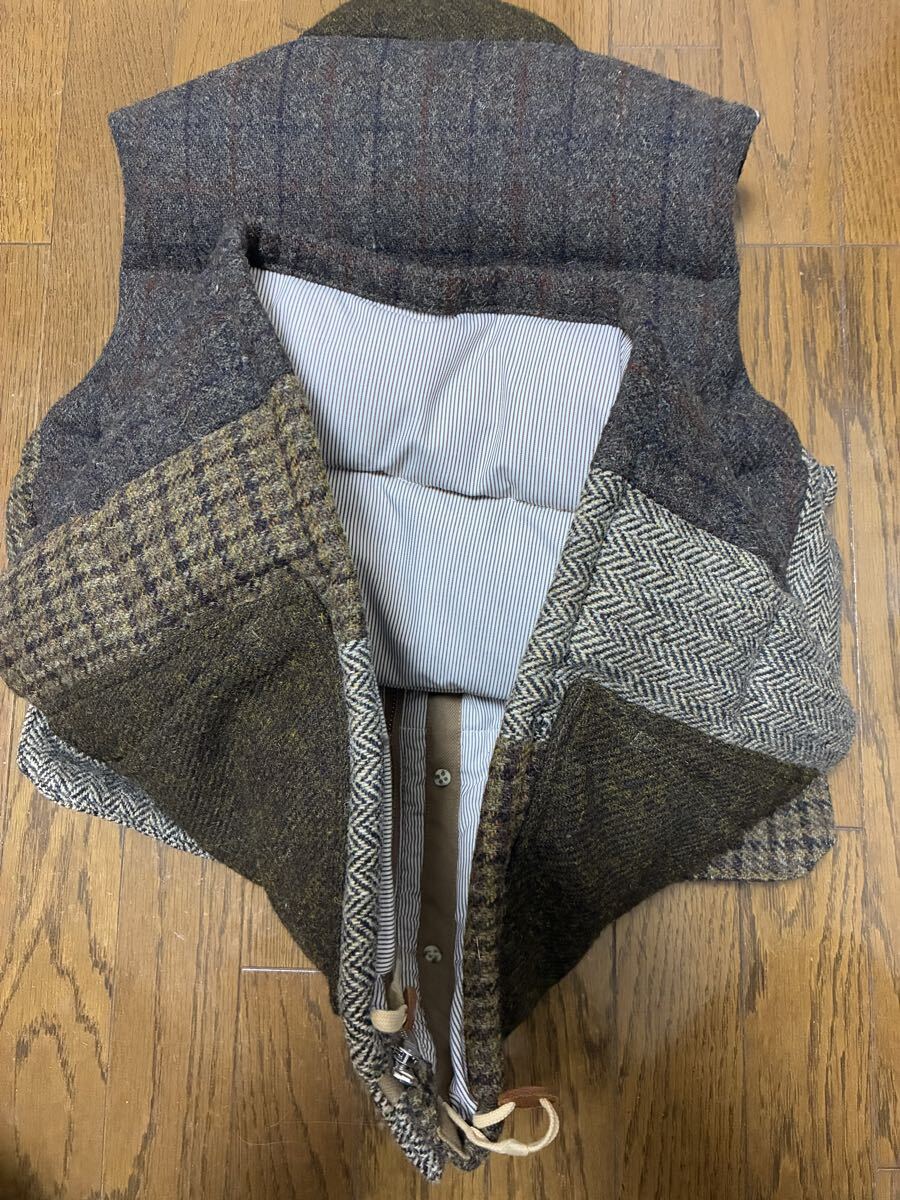 ユナイテッドアローズ×HARRIS TWEED ハリスツイード ダウンベスト クレイジーパターン 極美品 收藏