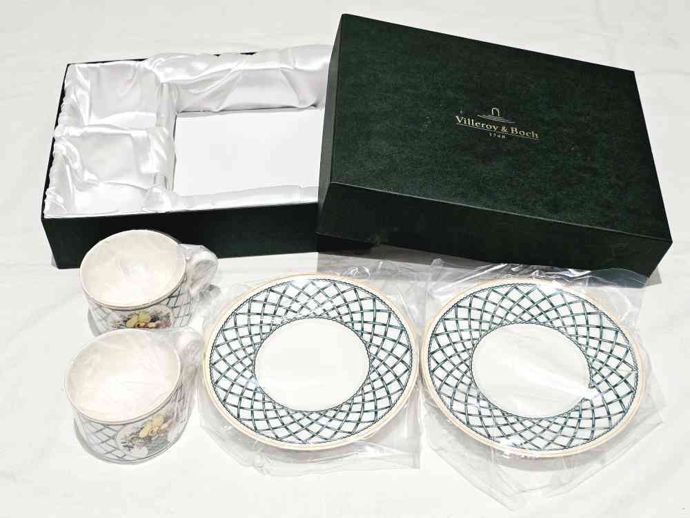 (TY3887)【美品】Villeroy & Boch ビレロイ&ボッホ バスケットガーデン カップ&ソーサー 2客セット 限定BOX 食器 收藏