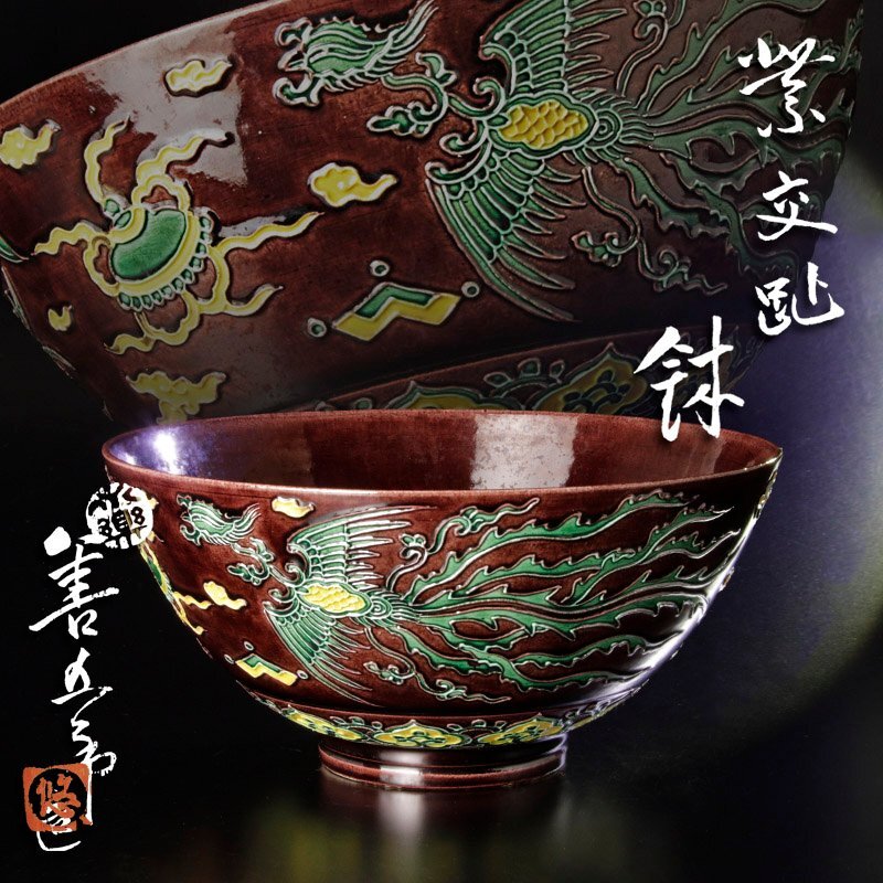 精緻な造形に伸びやかに羽ばたく鳳凰が描かれた、完成度の高い作品です。 ★商品は永楽善五郎(妙全)の作品である事を保証致します。 |
