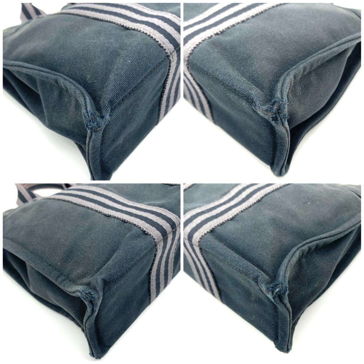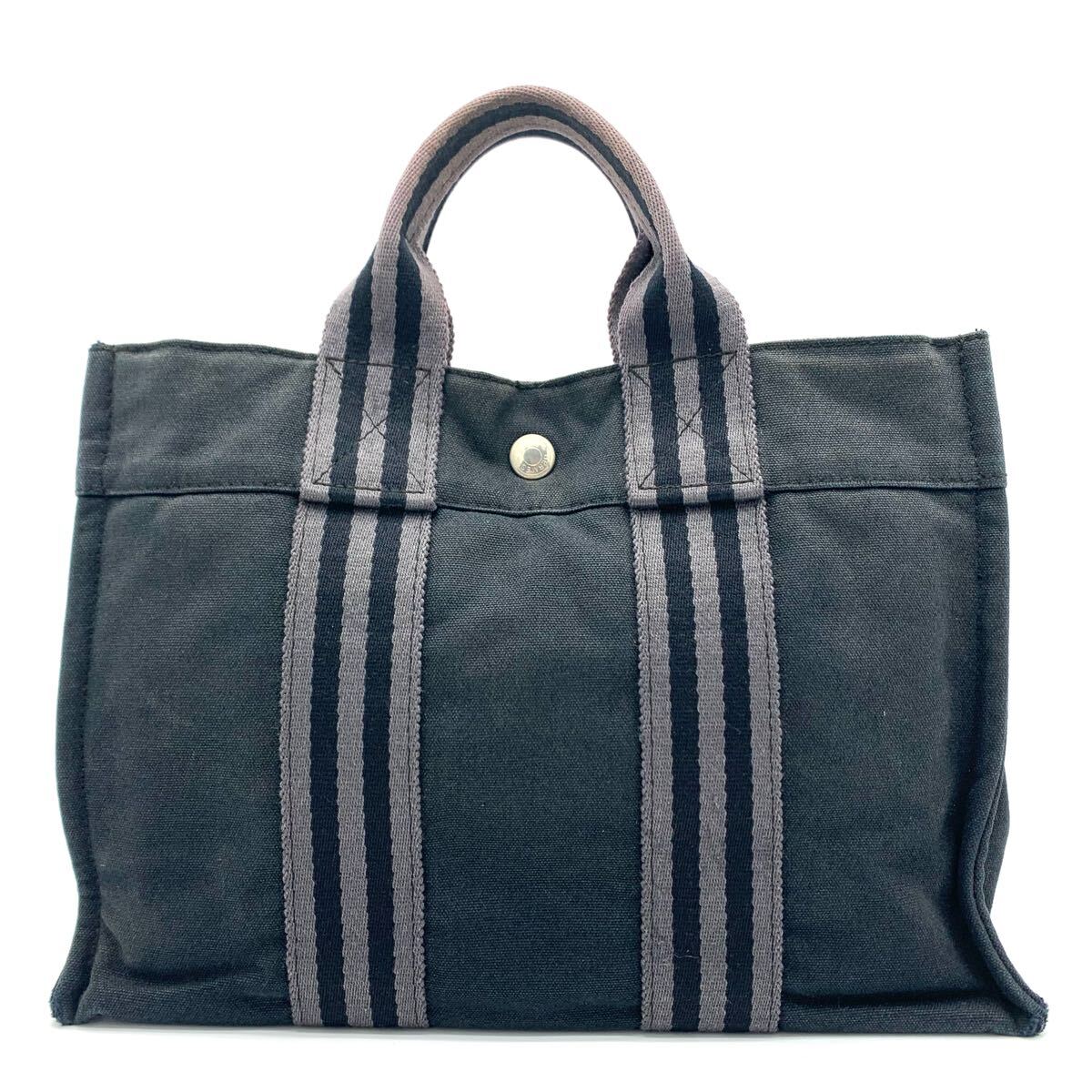HERMES フールトゥ PM トートバッグ ハンドバッグ キャンバス ボーダー ストライプ シルバー金具 ユニセックス ブラック グレー 收藏