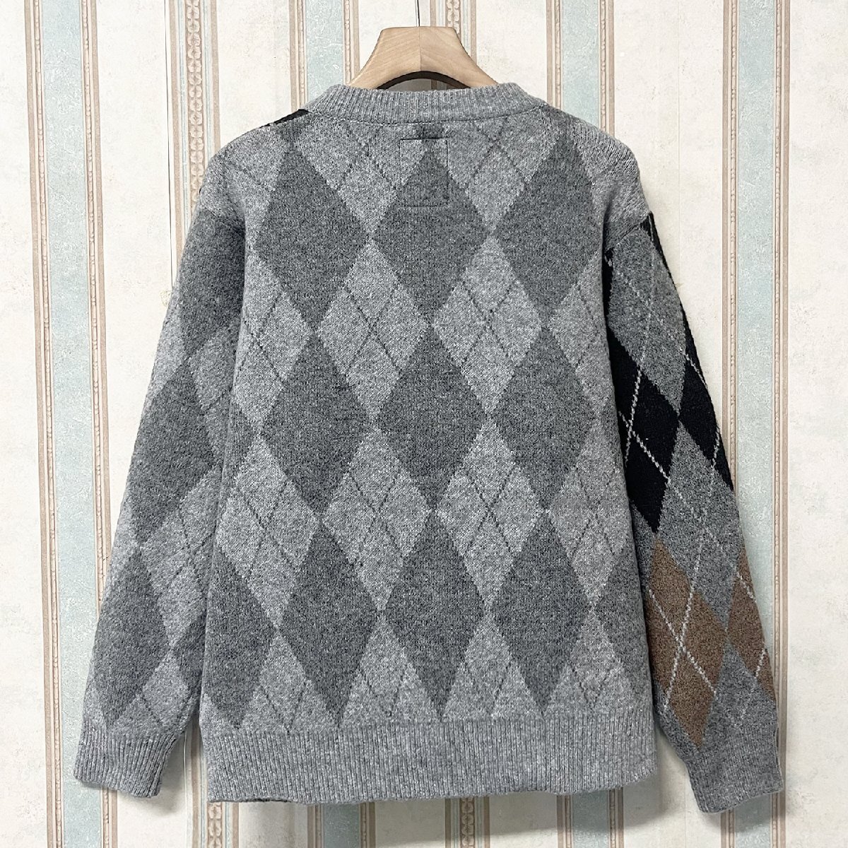 個性 定価5万 FRANKLIN MUSK・アメリカ・ニューヨーク発 カーディガン ウール混 ニット アーガイル柄 セーター ジャケット メンズ サイズ4 收藏
