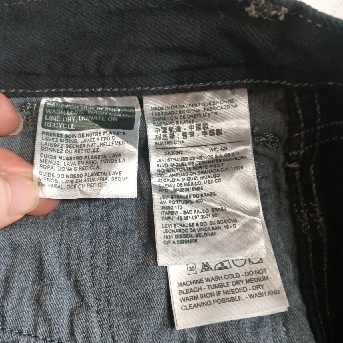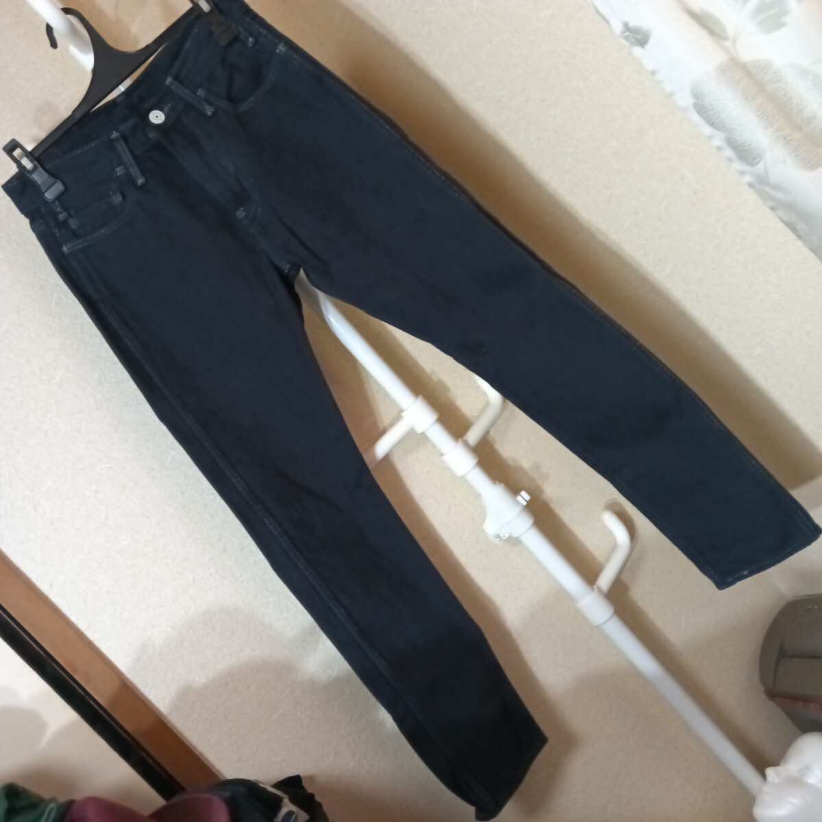 リーバイス(リーバイストラウスジャパン)のジーンズです。サイズは29で、実寸でおおよそウエスト37センチ、股下76センチ、裾幅17センチです。色は、黒色です。創業145周年の物で、リーバイスプレミアムです。多少使用感などございますが特に目立つキズや汚れは無いと思います。