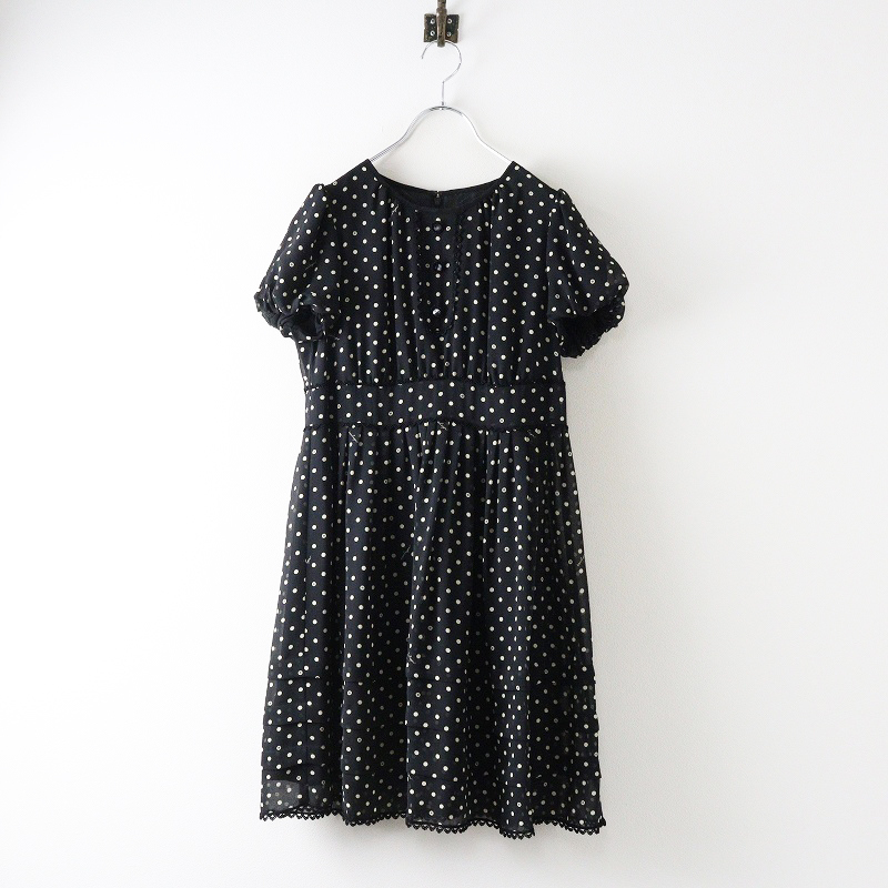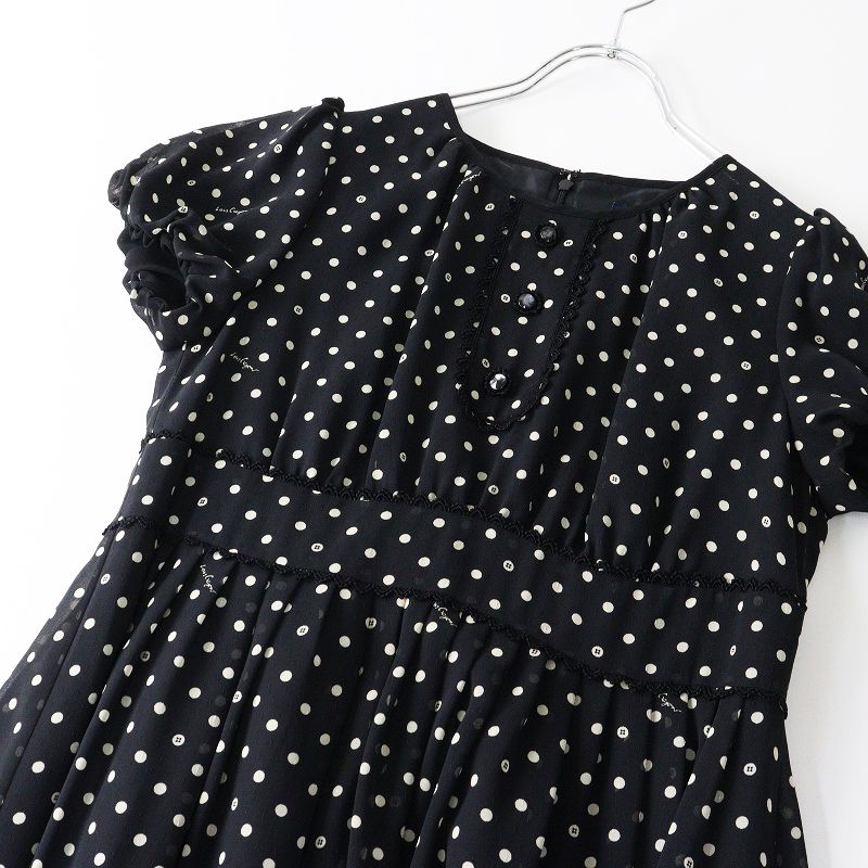 ヴィンテージ 当時物 ロイスクレヨン Lois CRAYON ボタンドットプリントシフォンワンピース M ブラック┃ドレス【2400014662924】 收藏