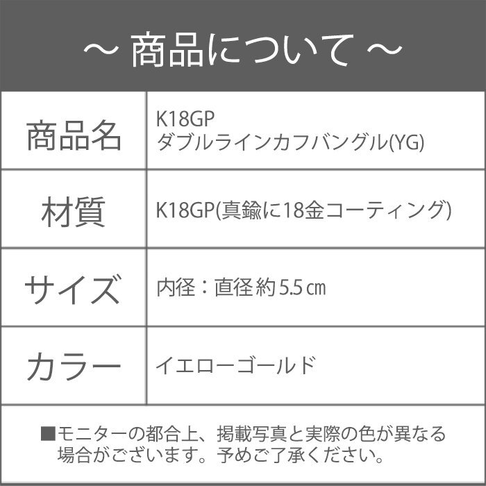 バングル ブレスレット レディース カフ シンプル メタル イエローゴールド 18金 18kコーティング 女性 / K18GP ダブルラインカフバングル 收藏