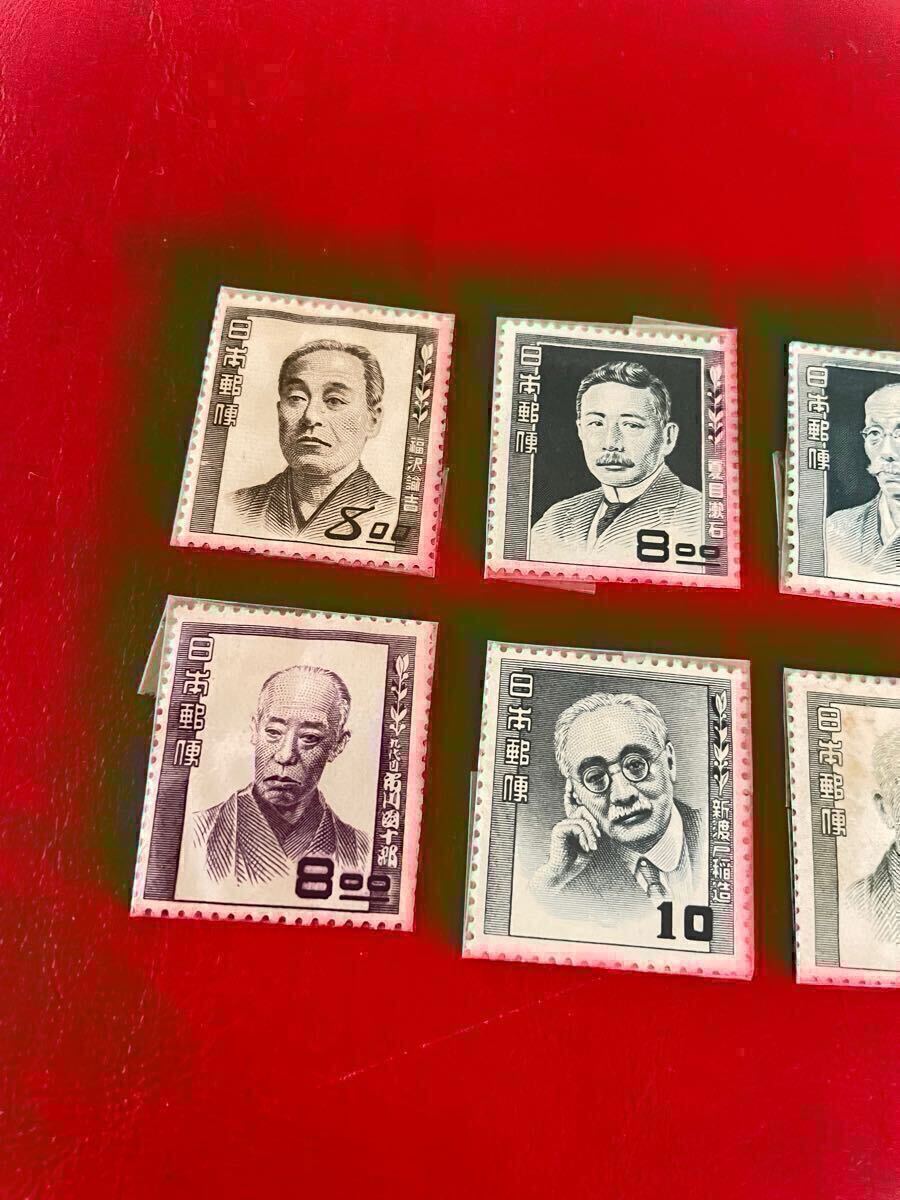 日本切手 未使用 文化人 文化人シリーズ 夏目漱石 市川団十郎 ほか 計8枚(8名)古切手 希少記念切手 特殊切手 コレクション 收藏
