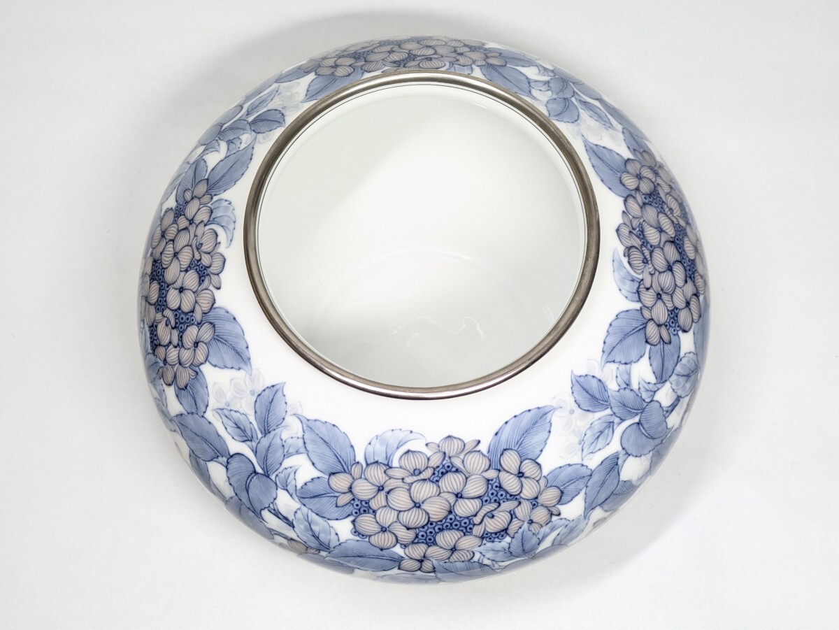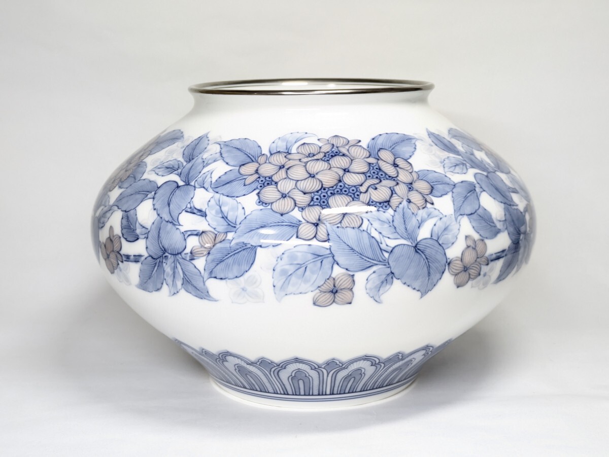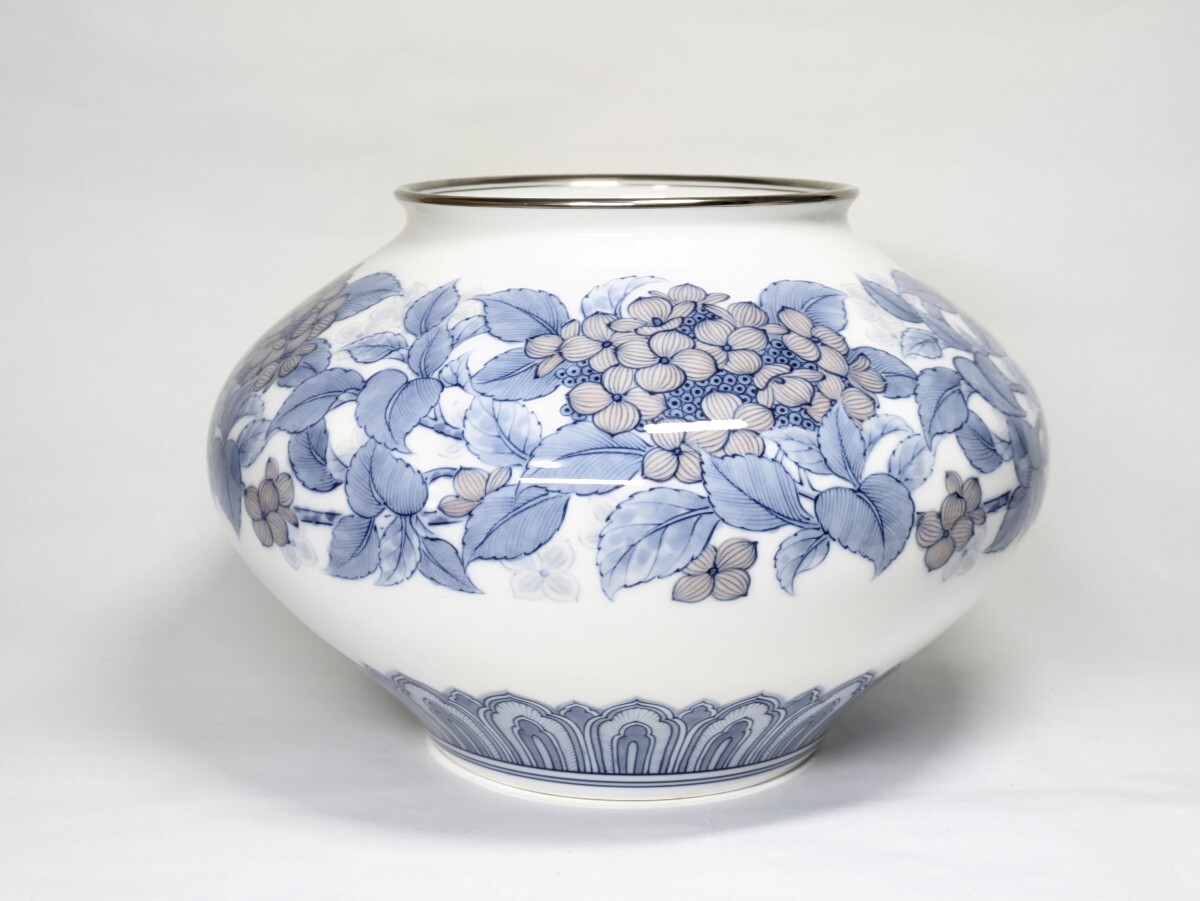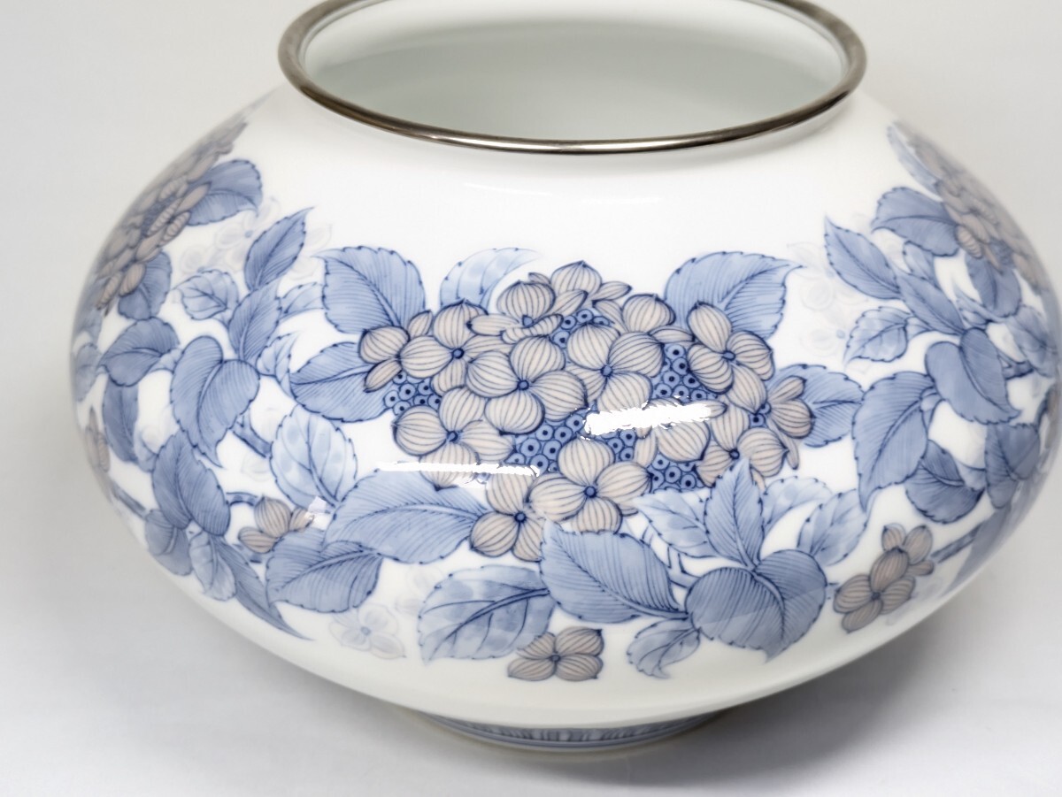 大倉陶園 OKURA ART CHINA LIMITED EDITION 青花 釉裏紅 紫陽花文 花瓶 高さ約19cm 28/50 限定生産品 / リミテッド エディション 染付 希少 收藏