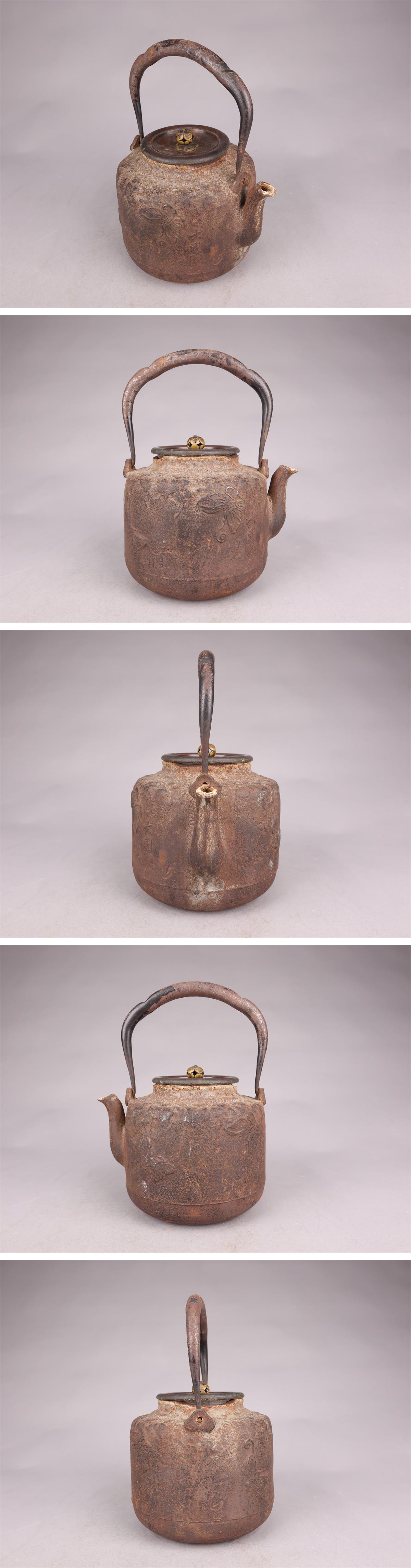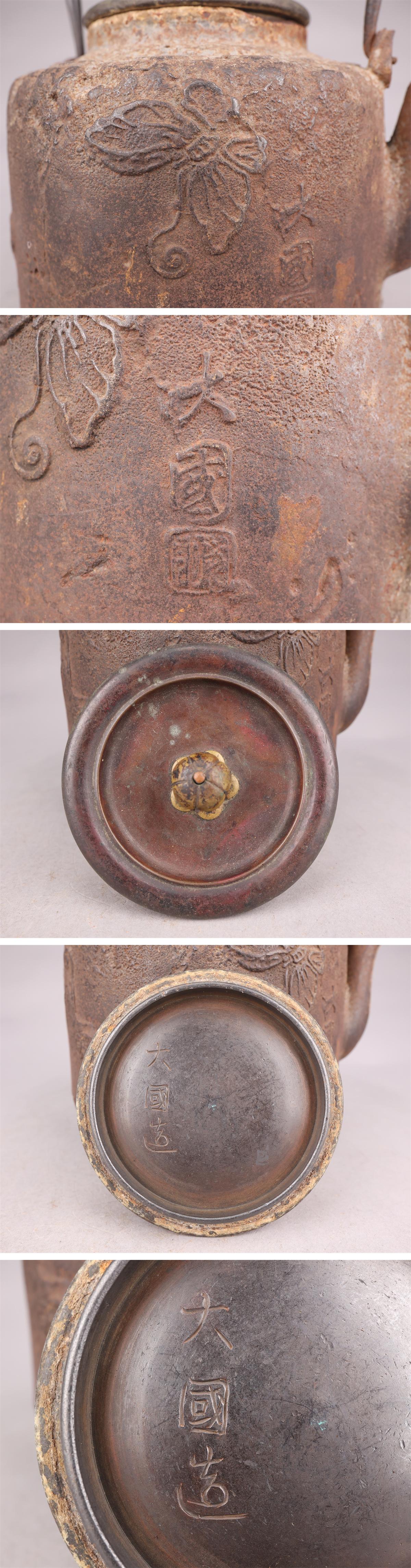 【志】A1002鉄瓶 大国寿郎作 蝶文 湯沸 茶道具 重量2464g 1500ml 收藏