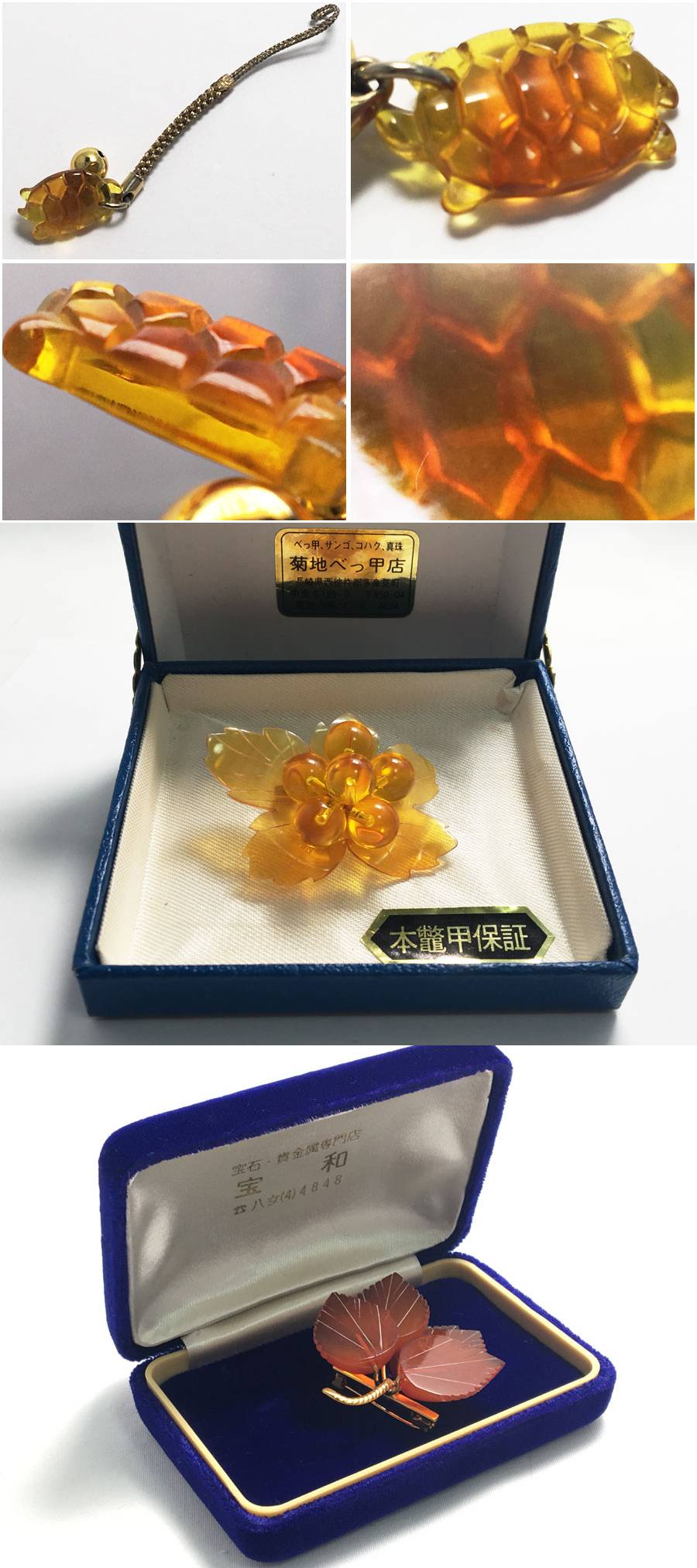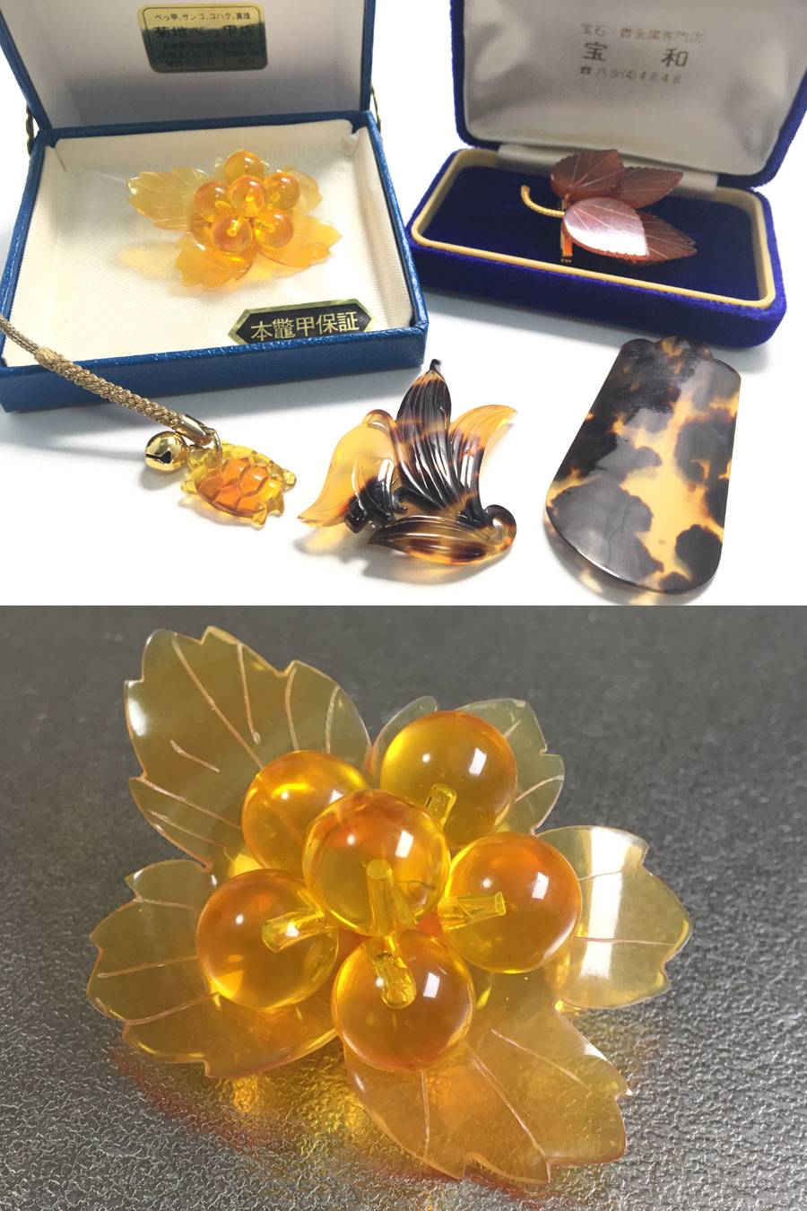 5点おまとめ 本鼈甲 菊地べっ甲店 謹製 他 ブローチ キーホルダー パーツ 花 紅葉 亀 吉祥 白べっ甲 長崎べっ甲 べっ甲風 2点ケース付 收藏