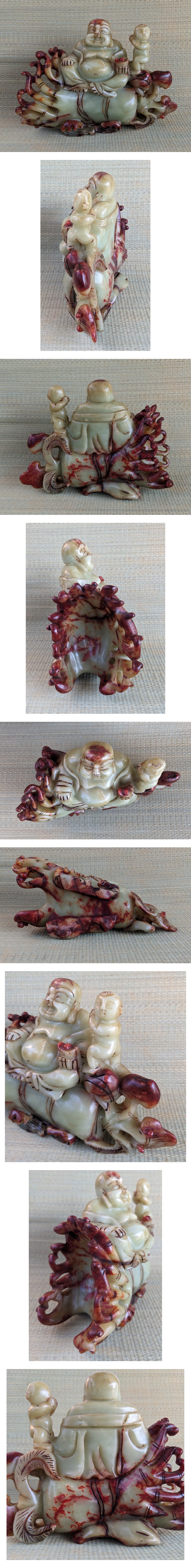 [雅] [俵に乗る布袋様に赤ちゃん] 寿山石 芙蓉石 翡翠 瑪瑙 黄玉 碧玉 中国美術 [特に紅色が素晴らしい] 收藏