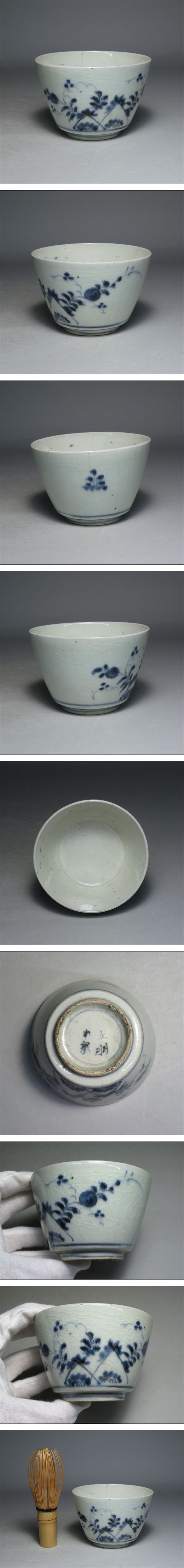 「コレクター所蔵品」◆江戸時代 古伊万里 染付花文ぞき猪口 蕎麦猪口 高台内に「大明年製」 ◆検:伊万里焼/有田焼/鍋島焼lot:121911 收藏