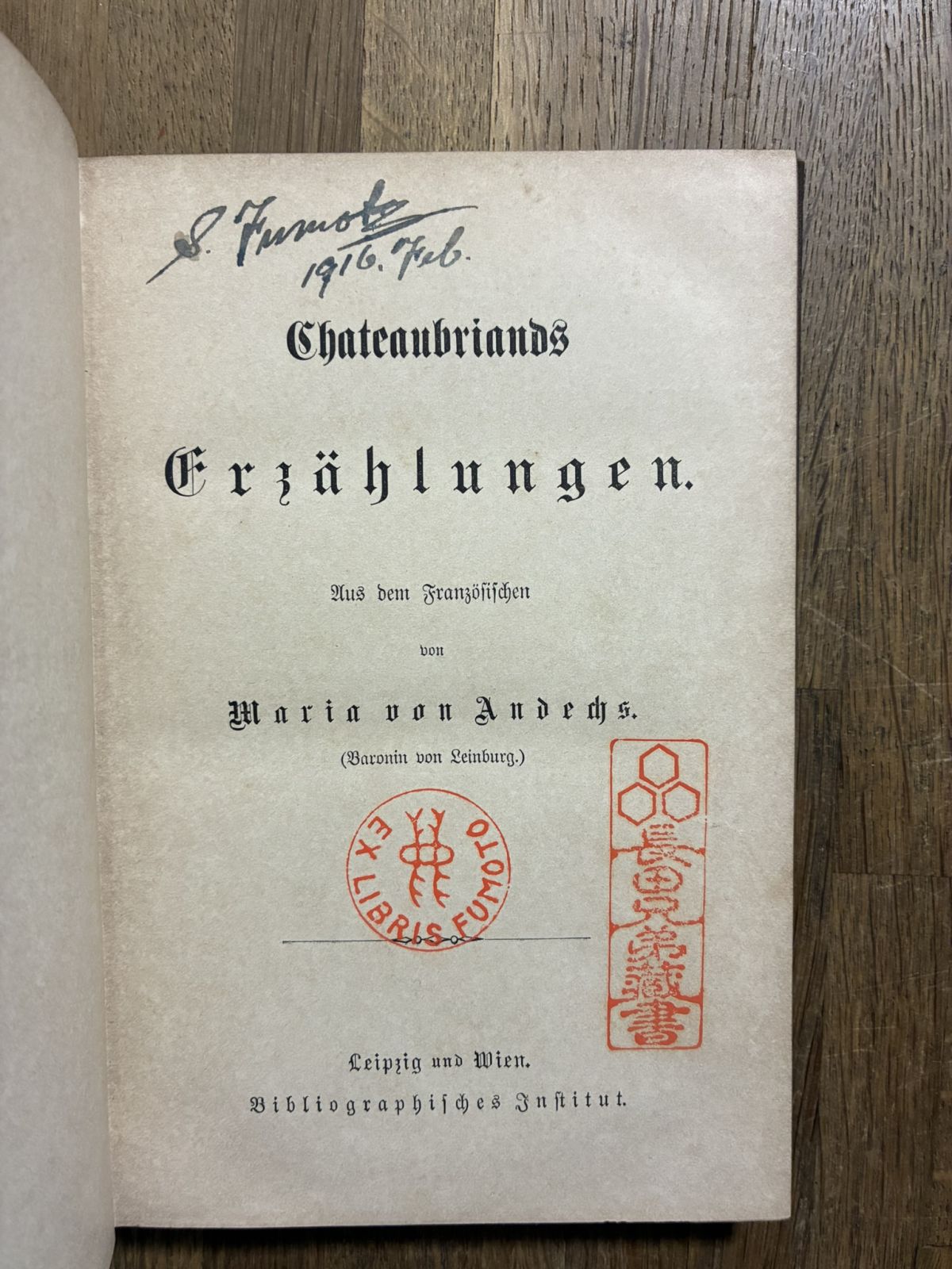 19世紀末 シャトーブリアン 『物語集(エルツェールンゲン)』 Chateaubriand Erzhlungen“ 独訳本 收藏