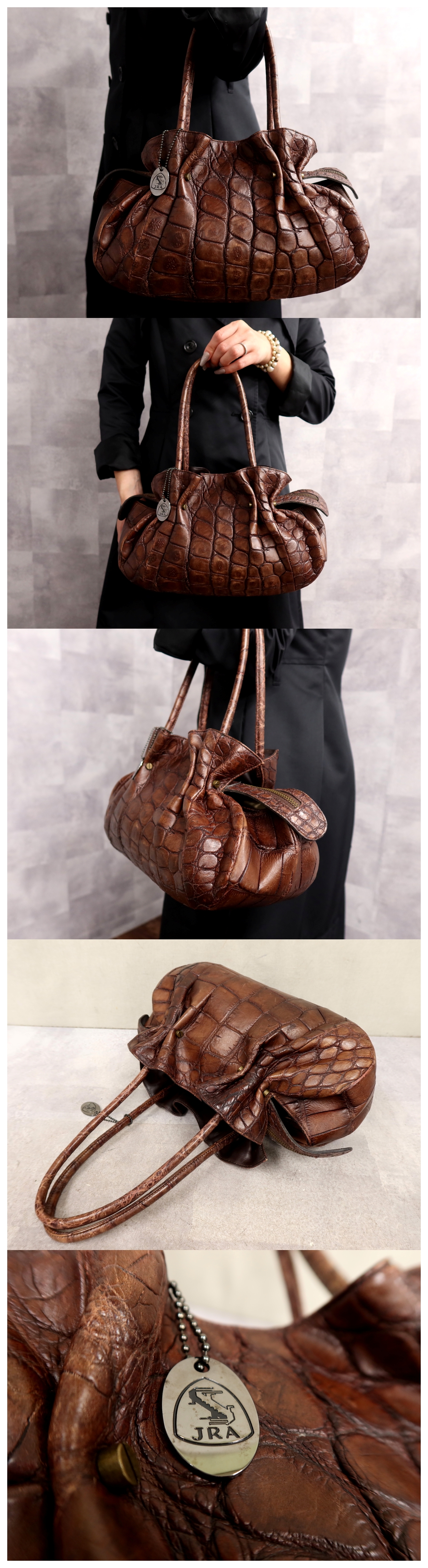 ●超美品●GENUINE●JRA認定●クロコダイル 本 ワニ 革●ハンド バッグ●ダークブラウン●腕掛け●かばん●Js64561 收藏