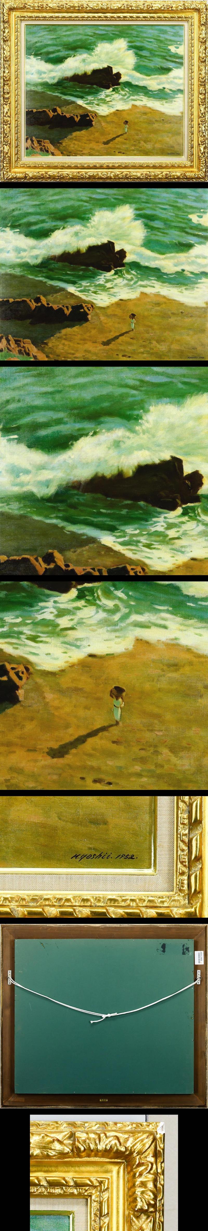 【WISH】Yoshii 油彩 20号 大作 1952年作 ◆白波の海・潮騒に佇む婦人 #26012866 收藏