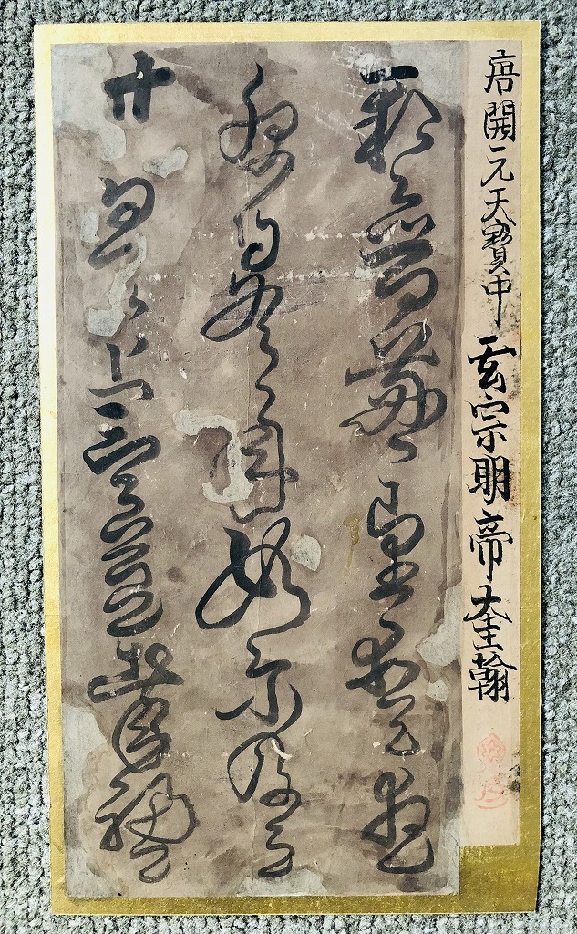 ★【屏風剥がし②】 『唐9代皇帝・玄宗/唐開元天寶中・玄宗明帝奎翰』《685~762年》《極札付》 古書 古文書 古筆 手鑑 断簡 紙本★ 收藏