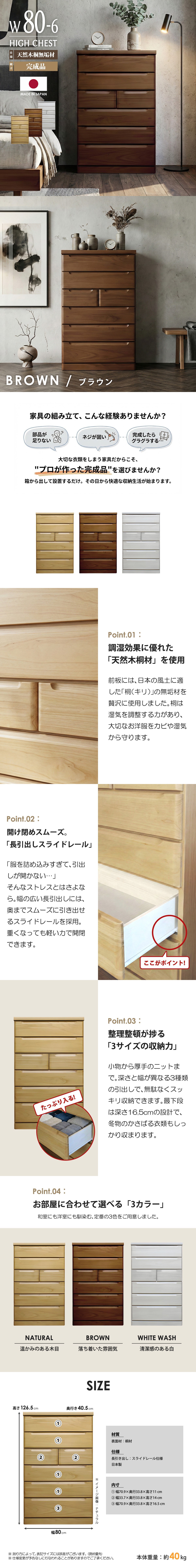チェスト タンス たんす 木製 おしゃれ 衣装ケース 白 洋服タンス 6段 幅80cm 収納家具 完成品 ブラウン 收藏