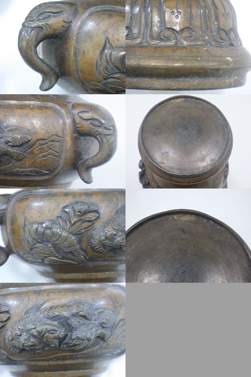 ※下記、【商品詳細】及び【落札後のご案内・注意事項・備考】欄をお読みいただき、ご理解頂いた上でご入札頂けますようお願い致します。 ![]() 《商品詳細 》 銅製 寺院仏具 花器 象双耳付 花 龍 獣文 一対を出品致します。 ◆サイズ/外口径:約11cm 内口径:約4cm 高さ:約15cm 幅:約12cm ※素人採寸の為、多少の誤差はご容赦ください。 ◆総重量/約1053.5g 《商品状態 》 中古品の出品となります。 ◆長期保管品となります。 ◆スレ、傷、汚れ、変色、変形、緑青ございます。 [ ※商品についての注意事項 ] ◆ いずれも画像を良くご確認頂き、ご自身の判断で納得されたうえで入札をお願い致します。 ◆ 画像につきましてはデジカメ撮影の為、実際の色合いと異なる事もありますのでご了承ください。 |