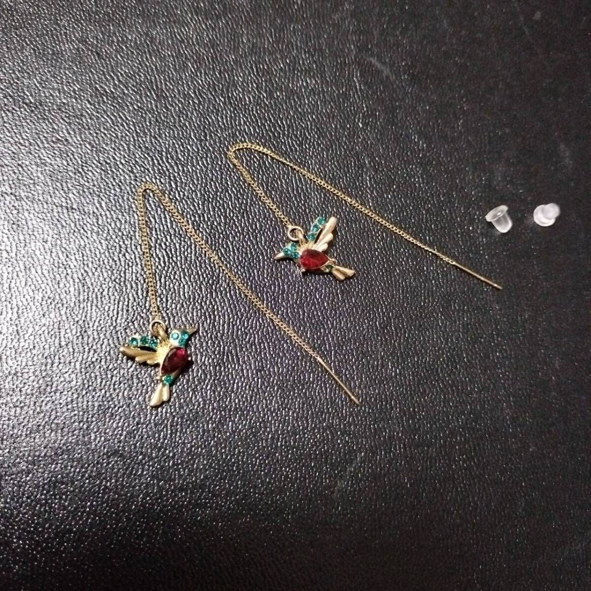 新品未使用 ピアス ゴールド チェーン 鳥 バード 赤 レッド クリスタル レディース 韓国 S925針 ラインストーン ハミング キラキラ #D133-3 收藏