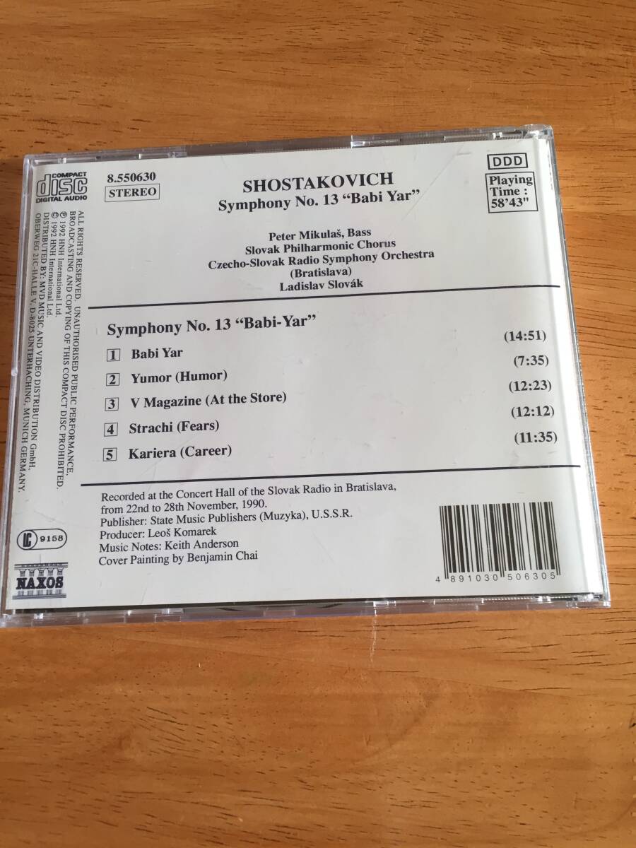 CD SHOSTAKOVICH Symphony No.13 ”Babi Yar” ショスタコーヴィッチ 收藏