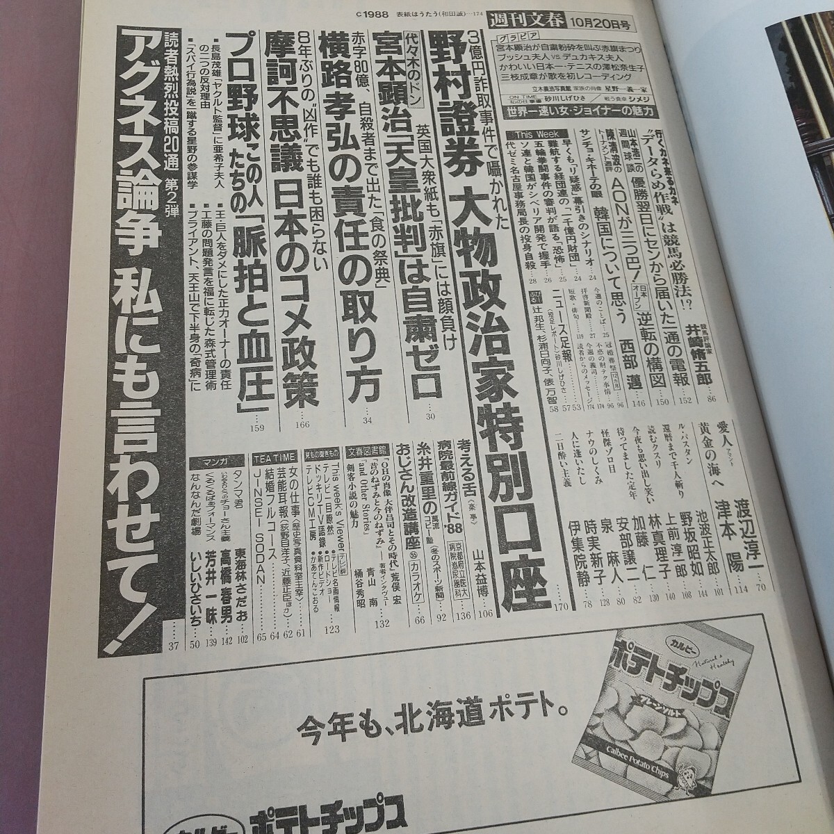 k06-369 週刊文春 昭和63年10月20日発行 文藝春秋 汚れあり 收藏