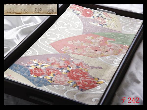 蔵【テ242】西陣逸品 琳派綴錦 地紙草花紋 象牙色地 気品豊かに 正絹純金糸六通高級美術袋帯 ◇検◇簪着物名古屋帯和装小物帯締め 收藏