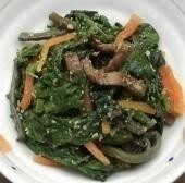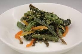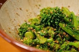 春を告げる菜の花と山菜を食べやすい長さに カットし胡麻和えにした1品です