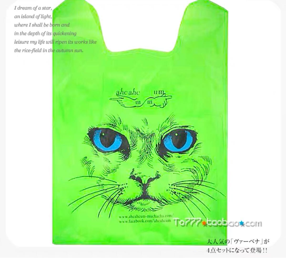 未使用 緑 可愛い 新品あちゃちゅむ/ムチャチャ ショッピングバック軽量エコバック猫柄 トートバッグ1枚 收藏