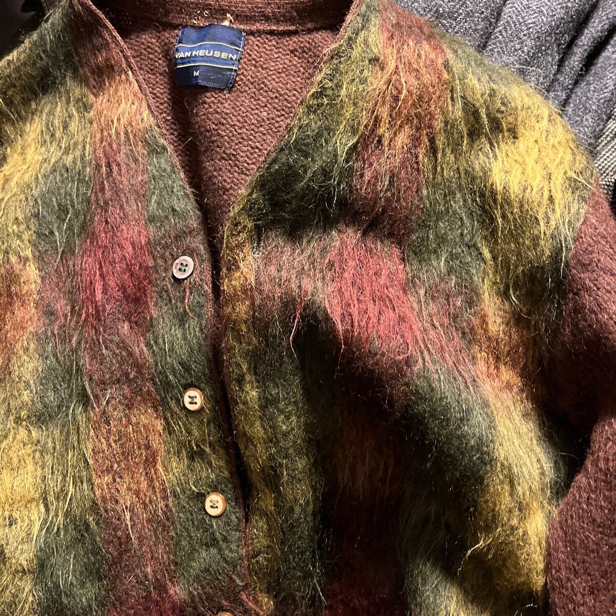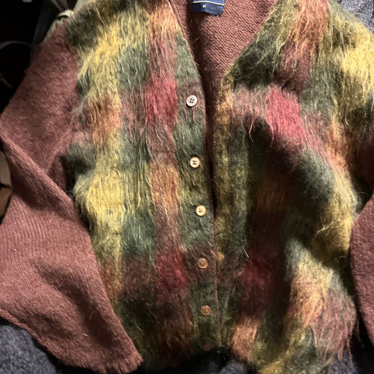 オールド・モヘア&ウールヴィンテージ ブラウンカーディガン インタレスティングカーディガン 肩幅50CM 着丈62CM希少 かわいい 收藏