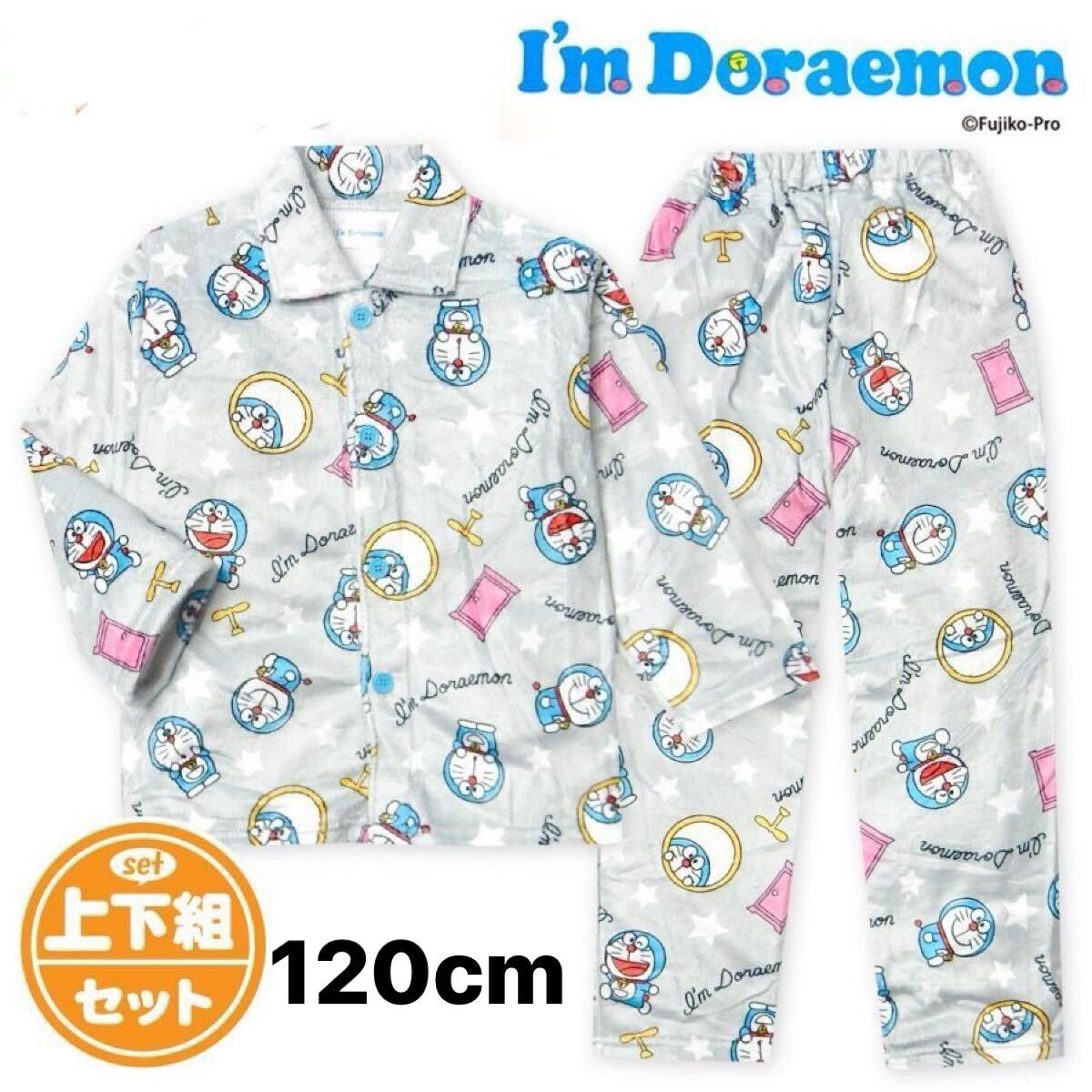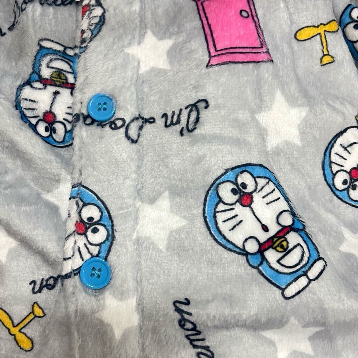 新品63641 120cm グレー ドラえもん キッズ ミンクフリース 前開き長袖パジャマ ボーイズ ルームウェアあったか素材 收藏