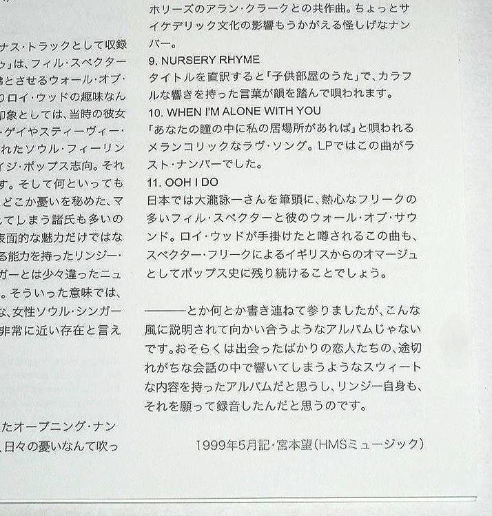 この、モロなフィル・スペクターサウンドは、リンジーが当時 恋人だった、元EL0にてウィザードのロイ・ウッドのサウンド・プロデュースによるもの。