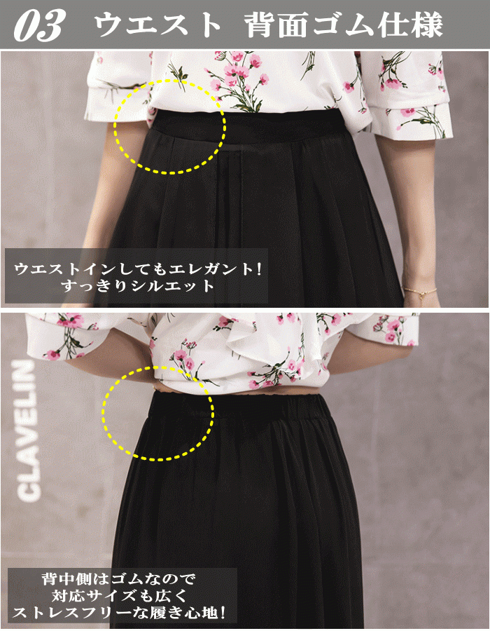 ウエストは背中側がゴム仕様となっており、ストレスフリー!