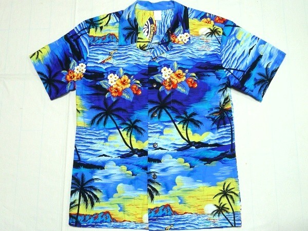 | 新品未使用。アメリカ・ハワイ州の地元民に最も高く支持を得ているハワイアン・シャツのローカル・ブランド「Palmwave Hawaii パームウェイブ・ハワイ」のショート・スリーブ(半袖)の総柄プリント・コットン生地を使用したオープン・カラーのハワイアン・シャツになります。サイズはUSサイズのMEDIUM(日本サイズのL相当)でカラーはブルー(Surfer at Sunset Blue)でヴィンテージ・ハワイアンの定番パターンであるハワイの夕景のランドスケープ・パターンがプリントされています。オールド感の溢れるカラーになります。(品番RN88831、41918-00)。素材にコットン100%のハワイの夕暮れの景観を総柄でプリントしたプリント・コットンを使用したオープン・カラーのショート・スリーブ・シャツでゆったりとしたボックス・シルエットにフラットなスクエア・ボトム、左胸に丁寧に柄合わせが施されたパッチ・ポケット、ボタン類はココナッツ・ボタンとリゾート感あふれるハワイアン・スタイルのサマー・カジュアル・シャツになります。実寸は着丈(衿下より)約75cm、肩幅(直線で)約51cm、身幅(腋下で)約57cm、袖丈(肩口から)約23cmとなります。(素人採寸ですので多少の誤差はお許し下さい。)素材は綿100%。中国製。人気の高い総柄プリントのリゾート感にあふれたハワイアン・スタイルのカジュアル・シャツで夏の定番品と言えるハワイアン・シャツになります。コスト・パフ―マンスに優れた高品質なハワイアン・シャツを製作することで世界的な評価を得ているブランドで人気の高いヴィンテージ・パターンの定番アロハ・シャツになります。 | |||