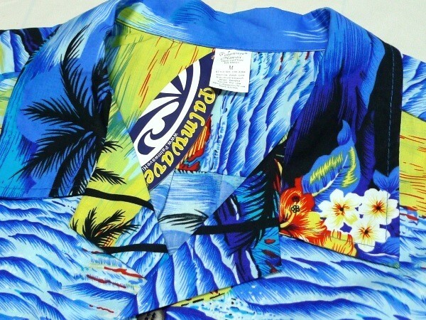 新品[PalmwaveHwaiiパームウェイブ・ハワイ]半袖プリントハワイアンシャツM(L)ブルーランドスケープ柄 收藏