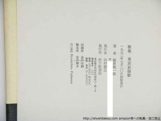 歌集 東京哀傷歌 初カバ帯 直筆歌献呈署名入/藤原龍一郎/砂子屋書房*37789 收藏