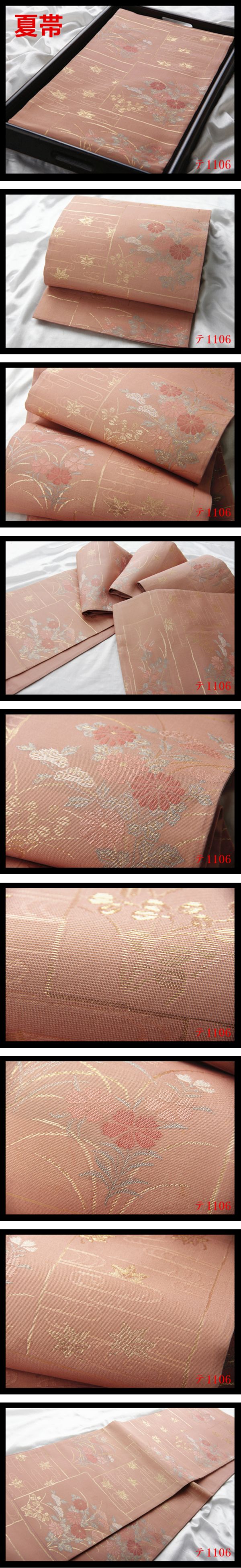 蔵【テ1106】西陣美品 夏帯 紗 秋草紋 薄紅色地 透かし 六通高級美術袋帯 ◇検簪着物名古屋帯和装小物帯締め 收藏