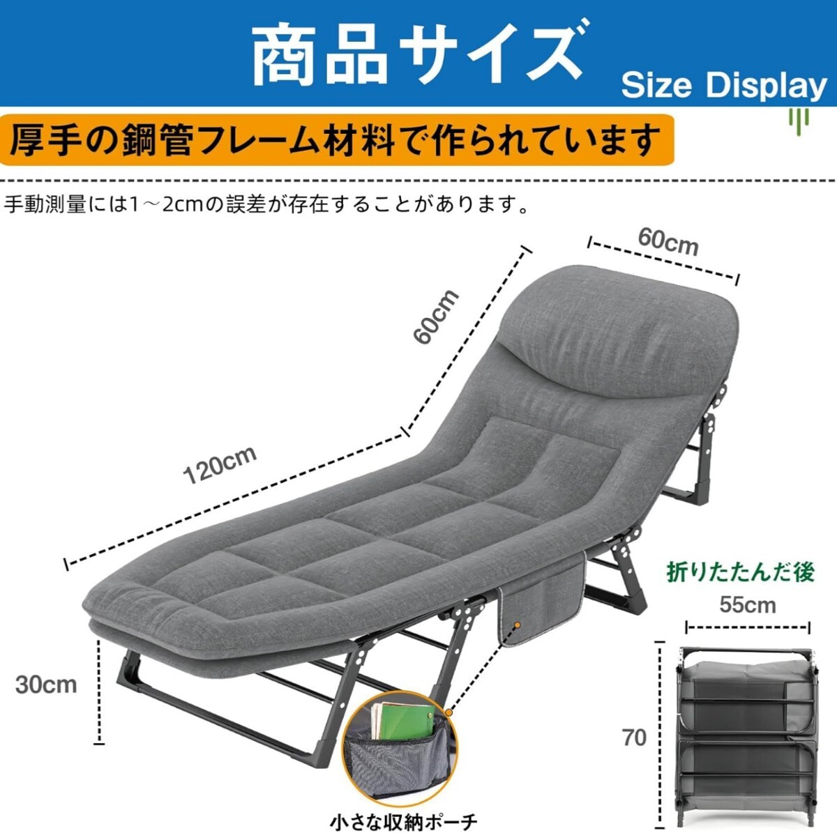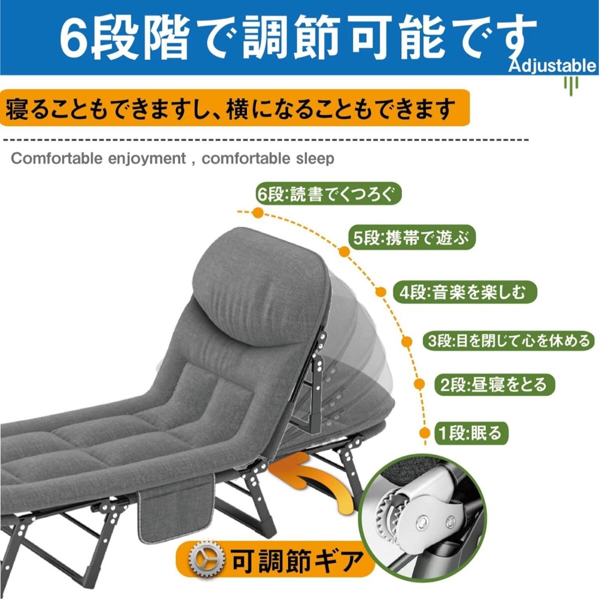 折りたたみ式簡易ベッド 室内外兼用 組み立て簡単 6段階調整 折り畳み式ベッド アウトドア・キャンプ用コット 収納便利 耐荷重200KG 收藏