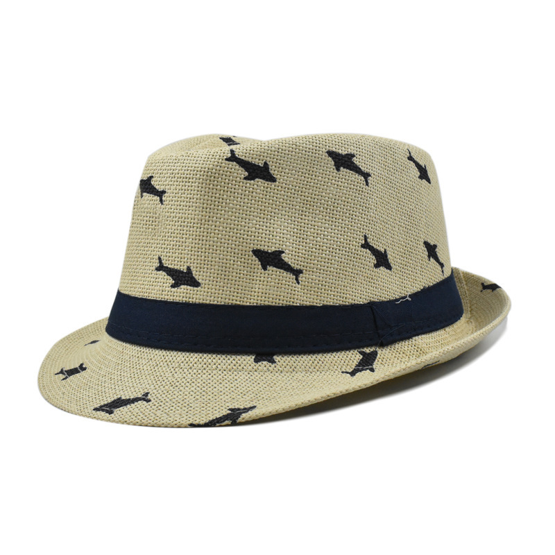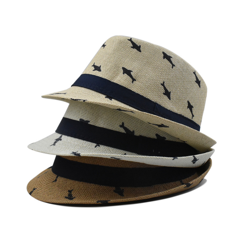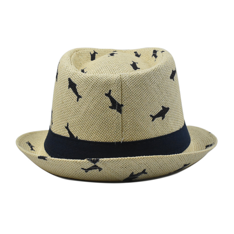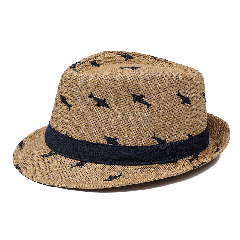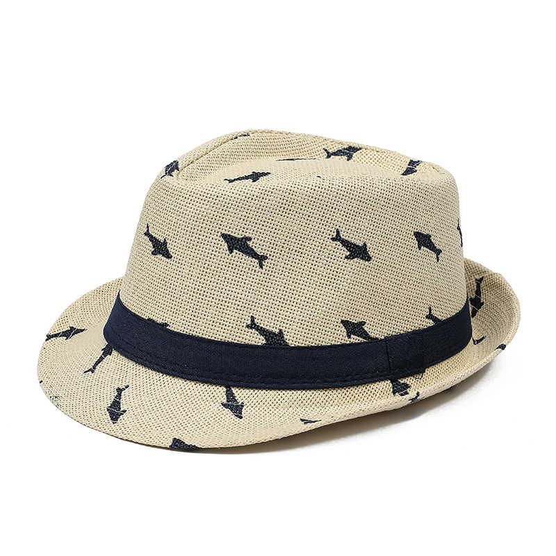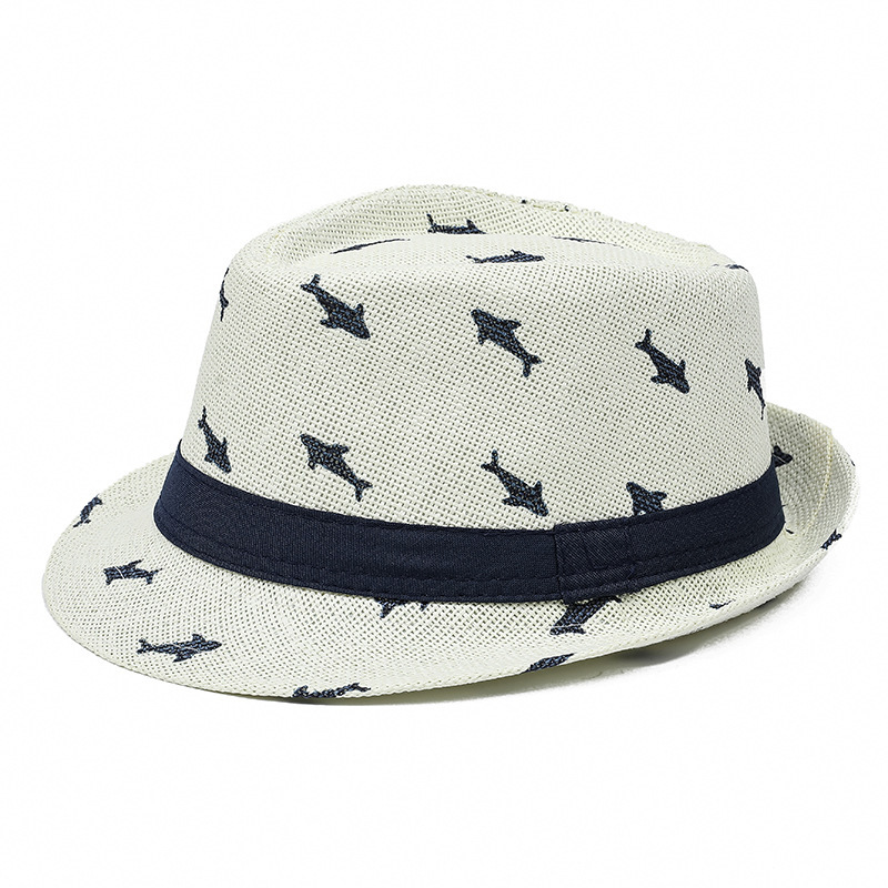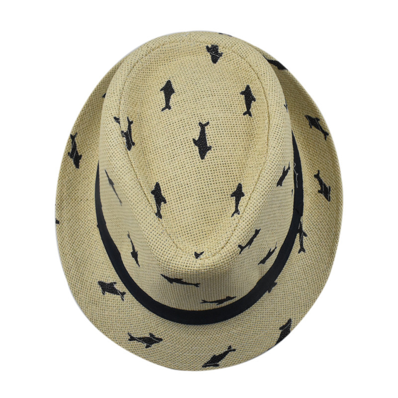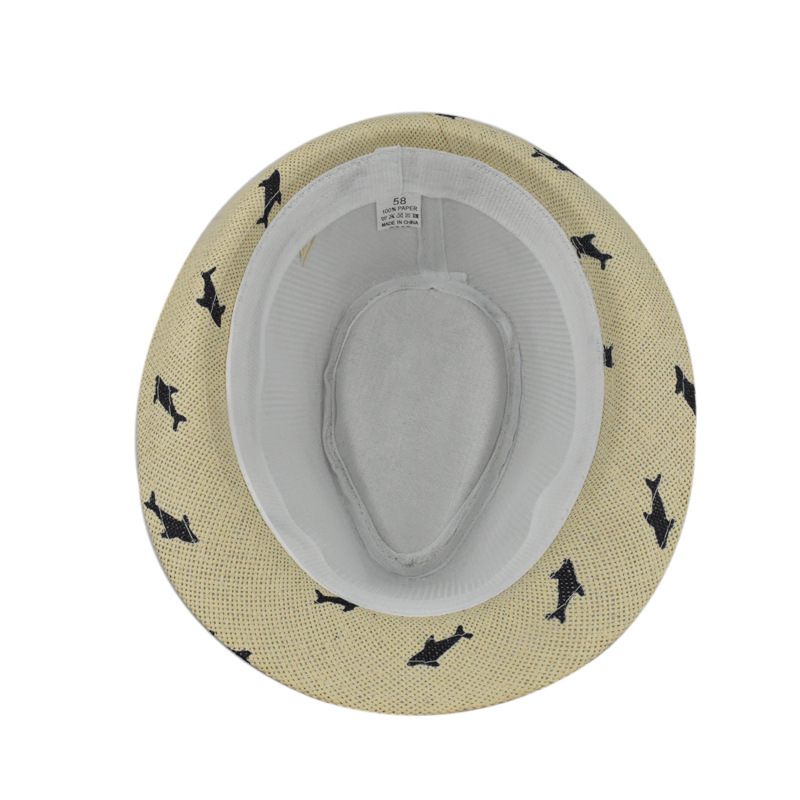 新品上質 ストローハット 魚柄フェドラハット アイボリート シンプル男女中折れハット パナマ ボルサリーノ お色選択可 收藏