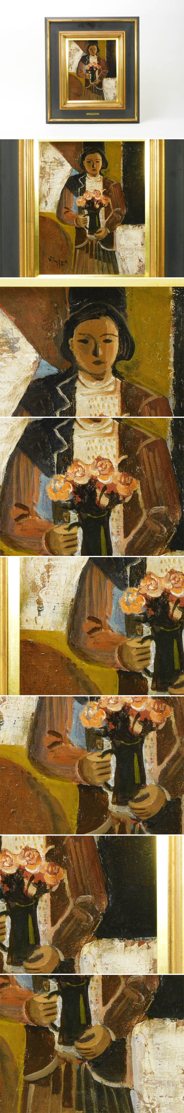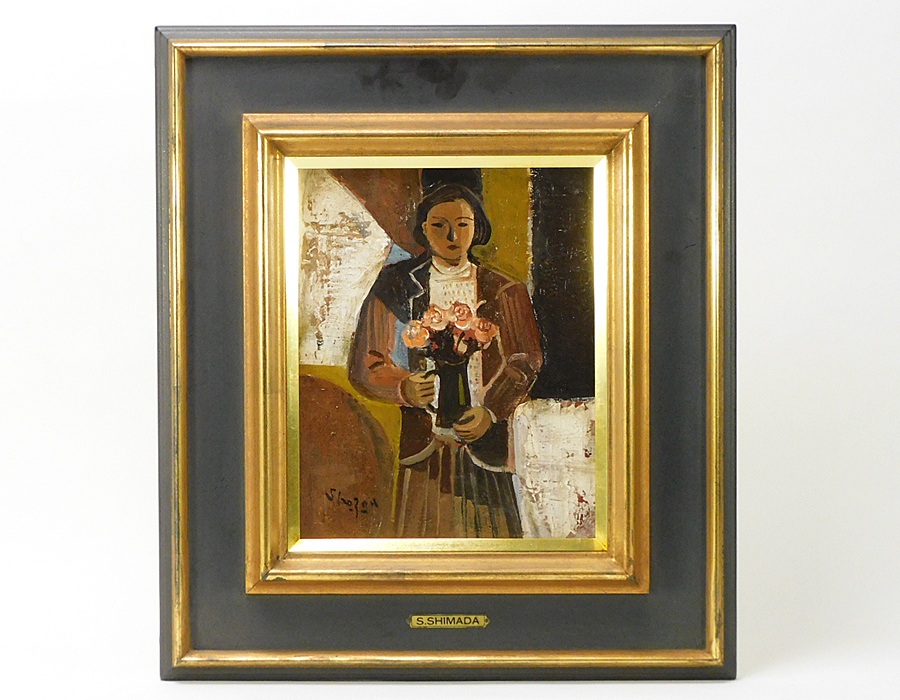 島田章三 花瓶を持つ人 F3 油彩 額装 共シール 専用箱 文化功労者 日本芸術院 s25060207 收藏