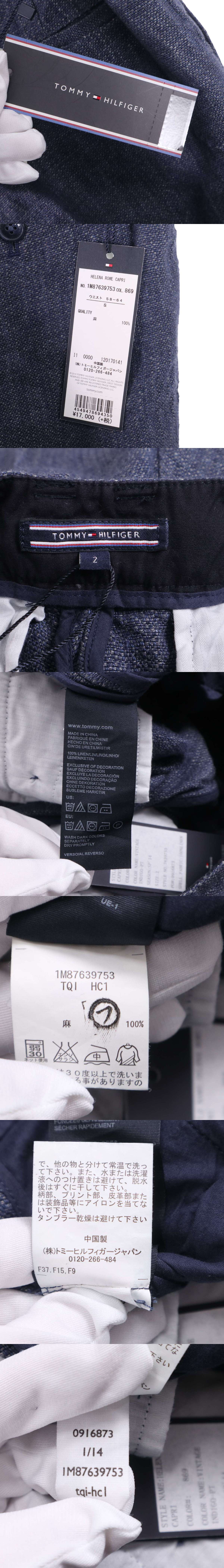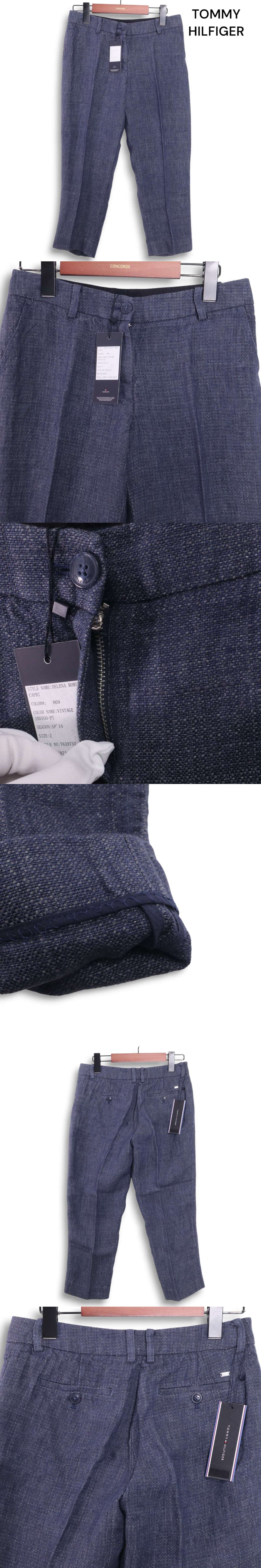 【新品 未使用】 TOMMY HILFIGER トミーヒルフィガー 春夏★ 麻100% リネン アンクル パンツ Sz.2 レディース ネイビー 收藏