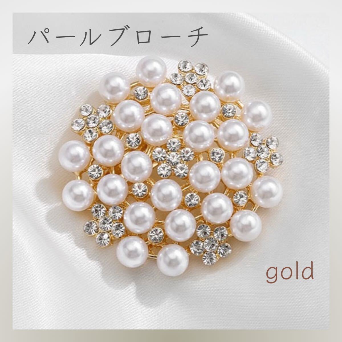 178*新品* パール ブローチ ゴールド ジルコニア コサージュ 冠婚葬祭