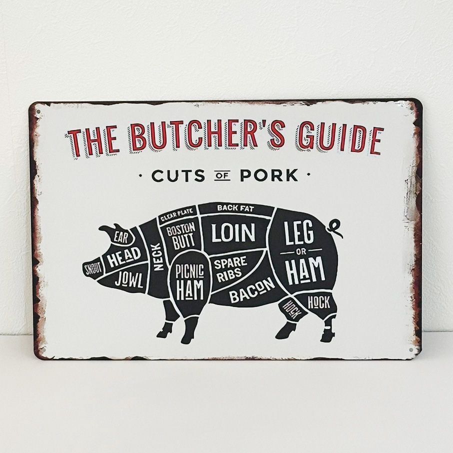 ブリキ看板 ブッチャーガイド ステーキ焼き肉屋 豚ポーク アメリカン雑貨インテリア壁装飾DIYリビングキッチン店内装飾レトロヴィンテージ 收藏