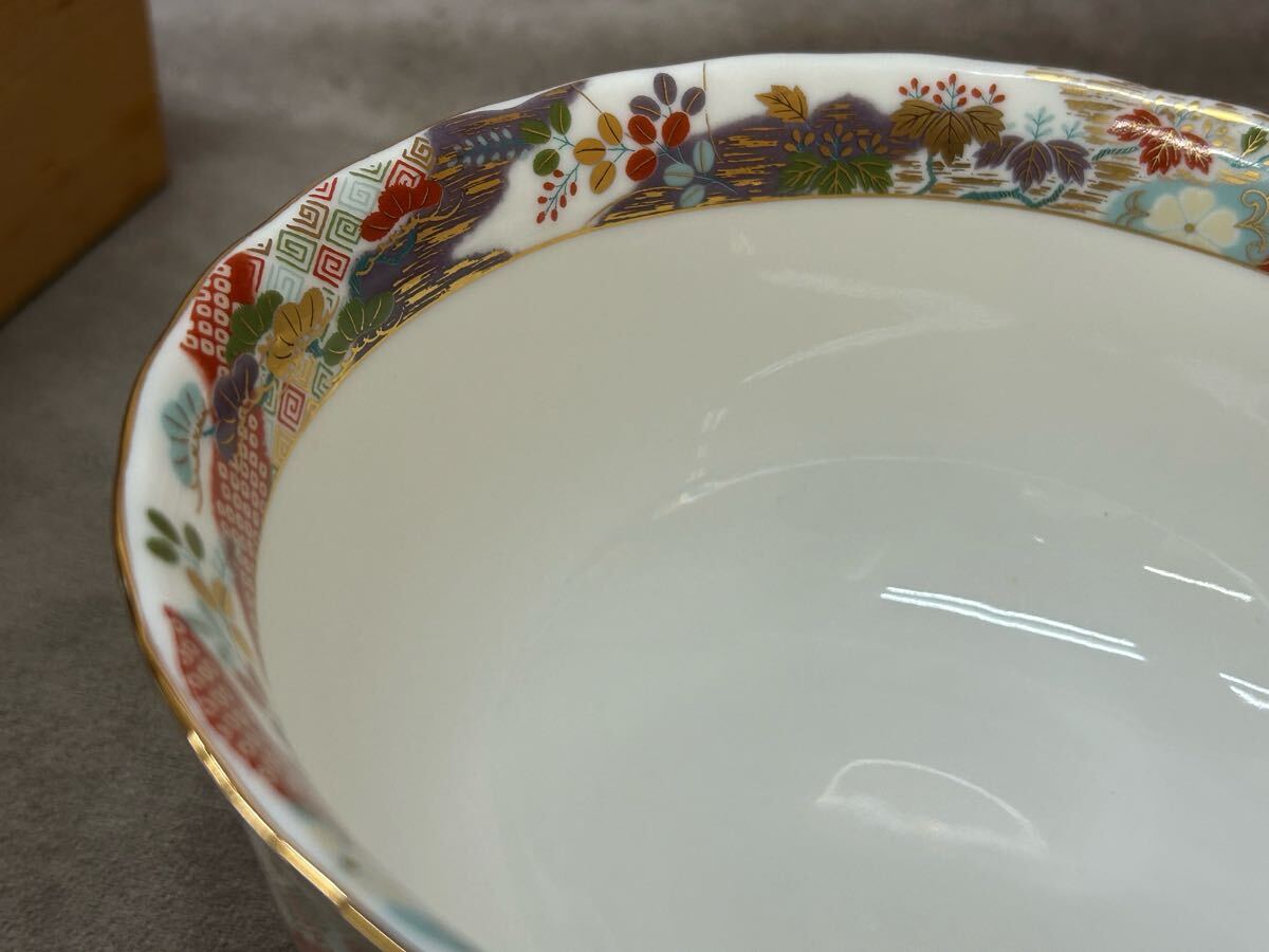 未使用 保管品 雛小袖 千總 菓子鉢 盛器 盛鉢 深鉢 ボウル 和食器 金彩 木箱 綺麗な柄 直径約17cm 收藏