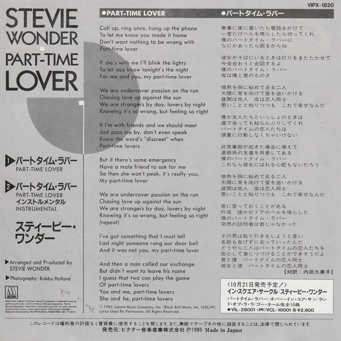 ★スティービー・ワンダー Stevie Wonder「パートタイム・ラバー Part-Time Lover」EP(1985年)VIPX-1820 美盤★ 收藏