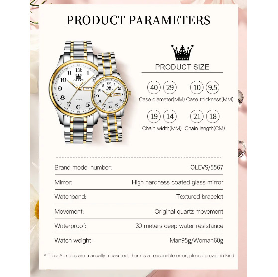 Olevs ペアウォッチ 男性 女性 高級ブランド 時計 クォーツ時計 カジュアル ゴールド デジタルダイヤル セット ギフト 收藏