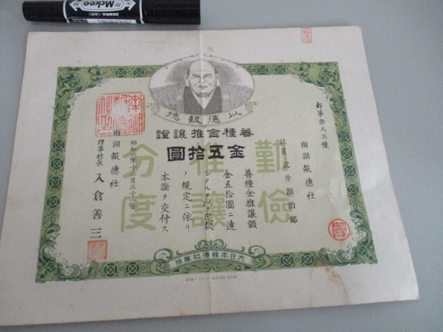 昭和8年偉人二宮尊徳 栃木県学務部刊B5・80p 二宮金次郎肖像入善種金推譲証 金50円共2点 Q336 收藏