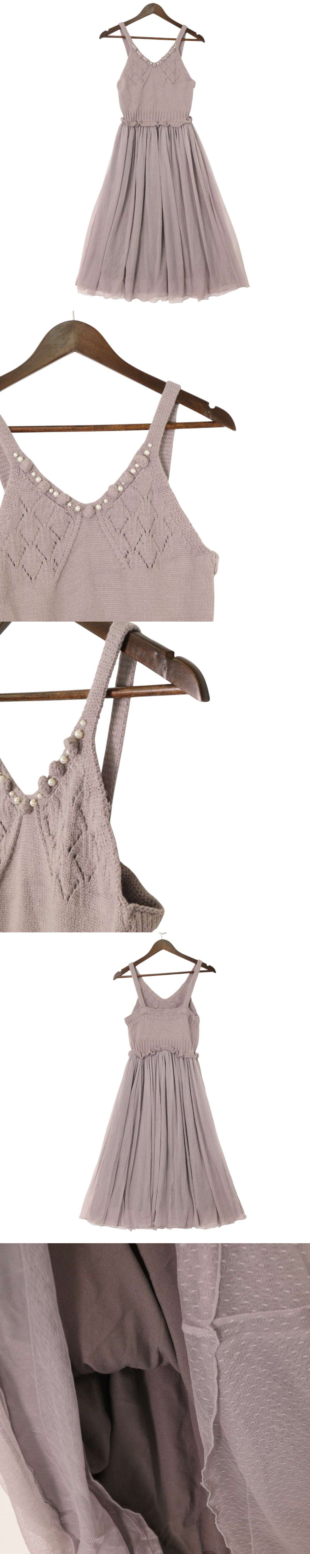 axes femme アクシーズファム 通年★ ダイヤ柄 ワンピース ニットドレス チュールドレス Sz.M レディース 收藏