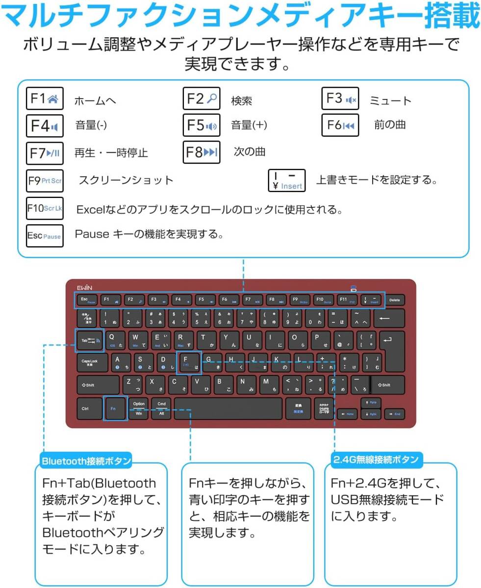 キーボード ワイヤレス bluetoothとusb無線両対応 JIS日本語配列 小型 Windows mac ios android対応 ipad iphone 收藏