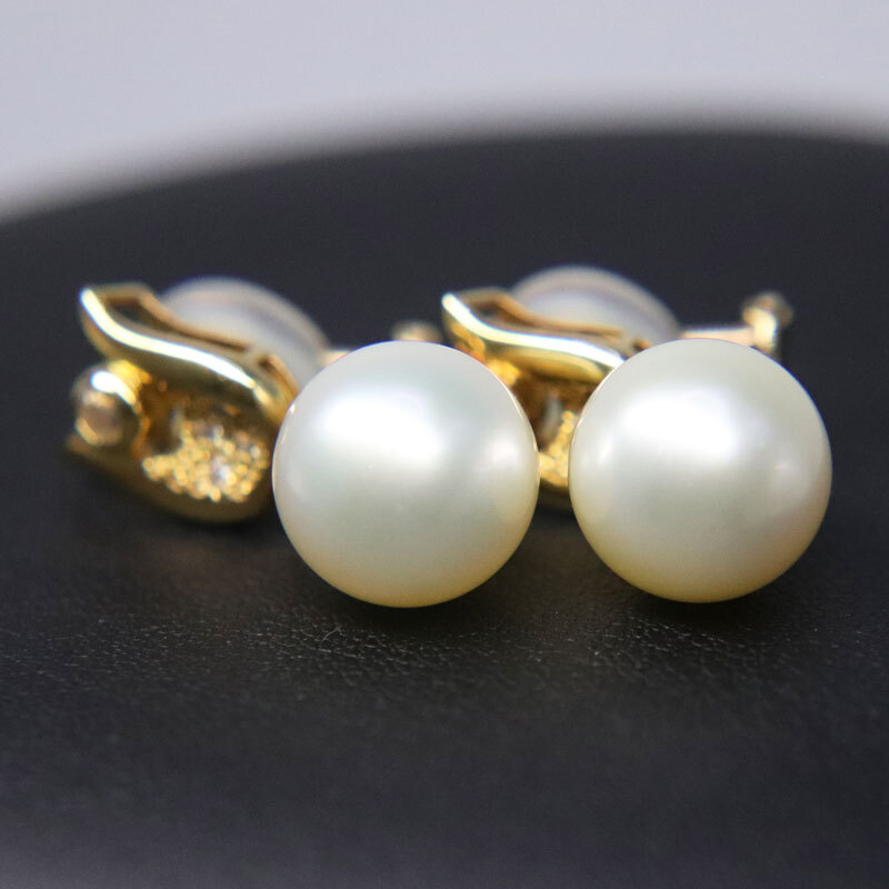 K18 ダイヤモンド付 パール イヤリング 南洋真珠 11.2mm D0.14ct 重量約8.0g レディース pearl earring accessory 中古 美品 送料無料! 收藏