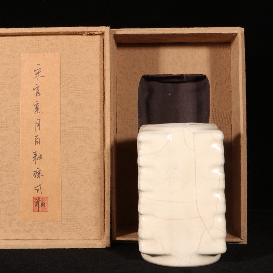 宋時代 官窯 月白釉 重水素式瓶 共箱付き 高さ16 cm 直径9.5 cm 中国骨董 珍品旧蔵 古賞物 時代物 808 收藏