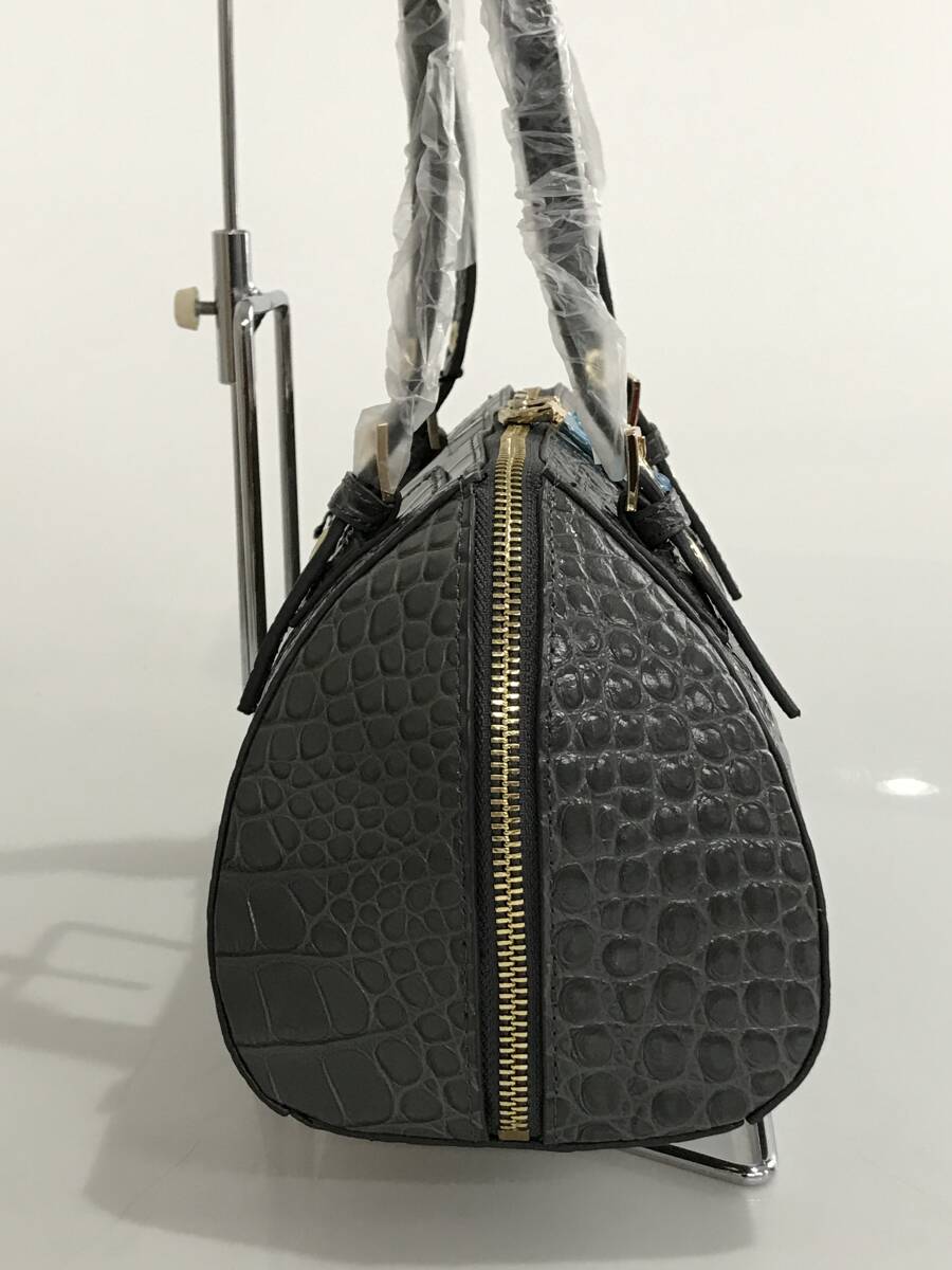 HG8509 Falchi New York クロコ型押し ハンドバッグ ミニボストン ミドルショルダー レザー 牛革 グレー ファルチニューヨーク タグ付き 收藏