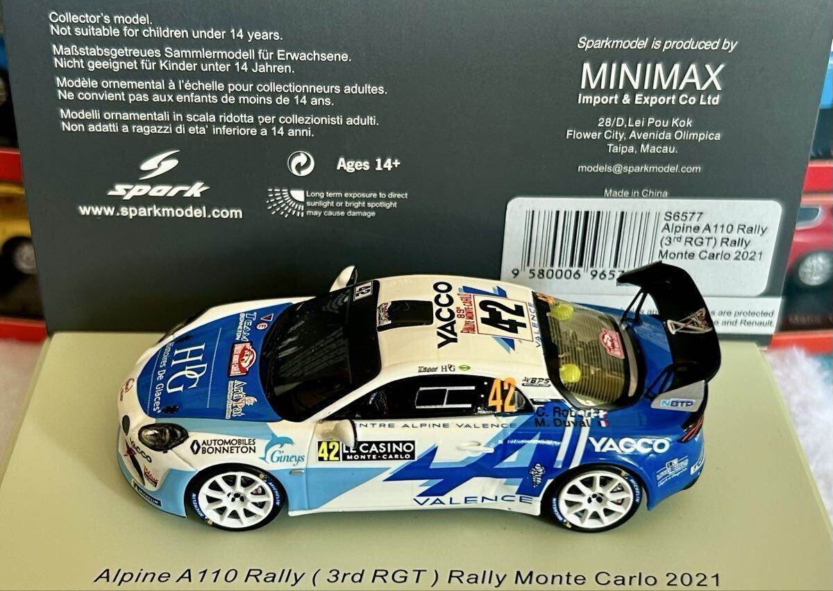 スパーク spark 1/43 Alpine A110 Rally #42・3rd RGT Rally Monte Carlo 2021 [S6577] C.Robert - M.Duval 收藏
